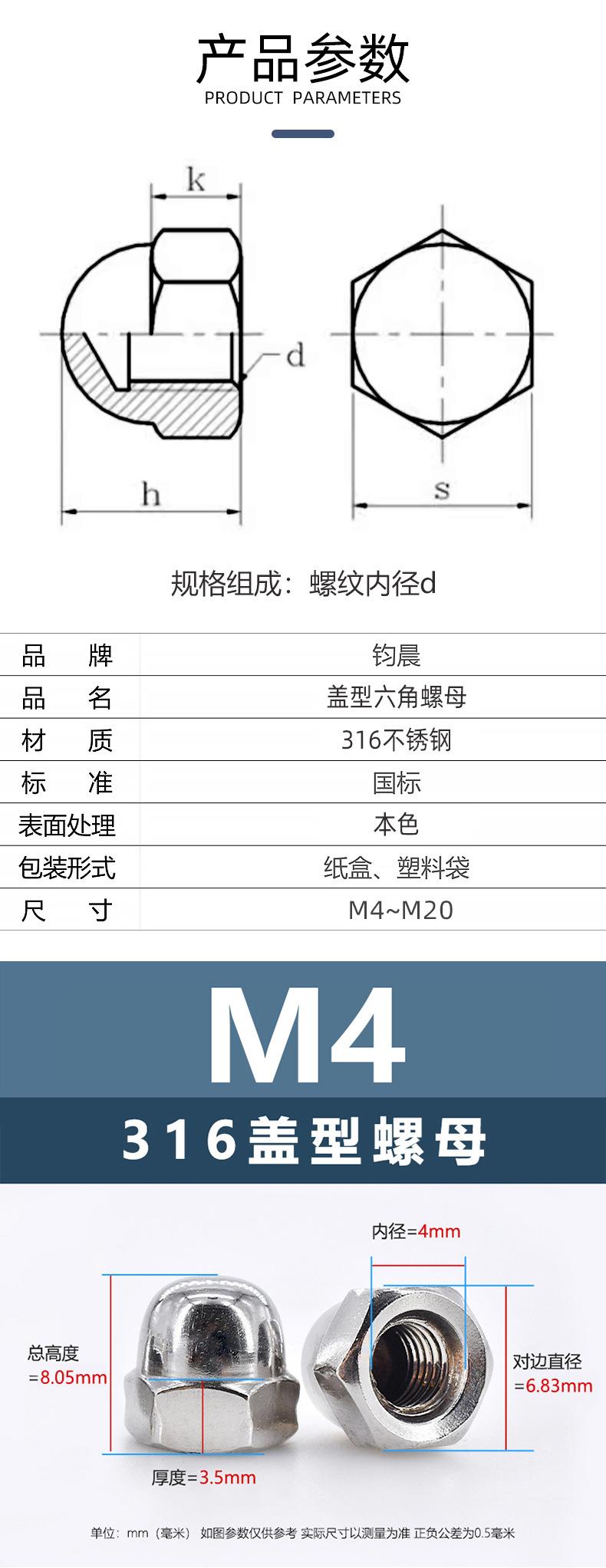 M3 (cap nut 304), M4 (cap nut 304), M5 (cap nut 304), M6 (cap nut 304), M8 (cap nut 304), M10 (cap nut 304), M...