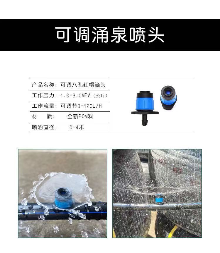 El producto está hecho de plástico de alta calidad con alta precisión de fabricación, que puede prevenir eficazmente las obstrucciones, salida de agua uniforme, fuerte rendimiento antienvejecimiento, liviano y anticongelante.