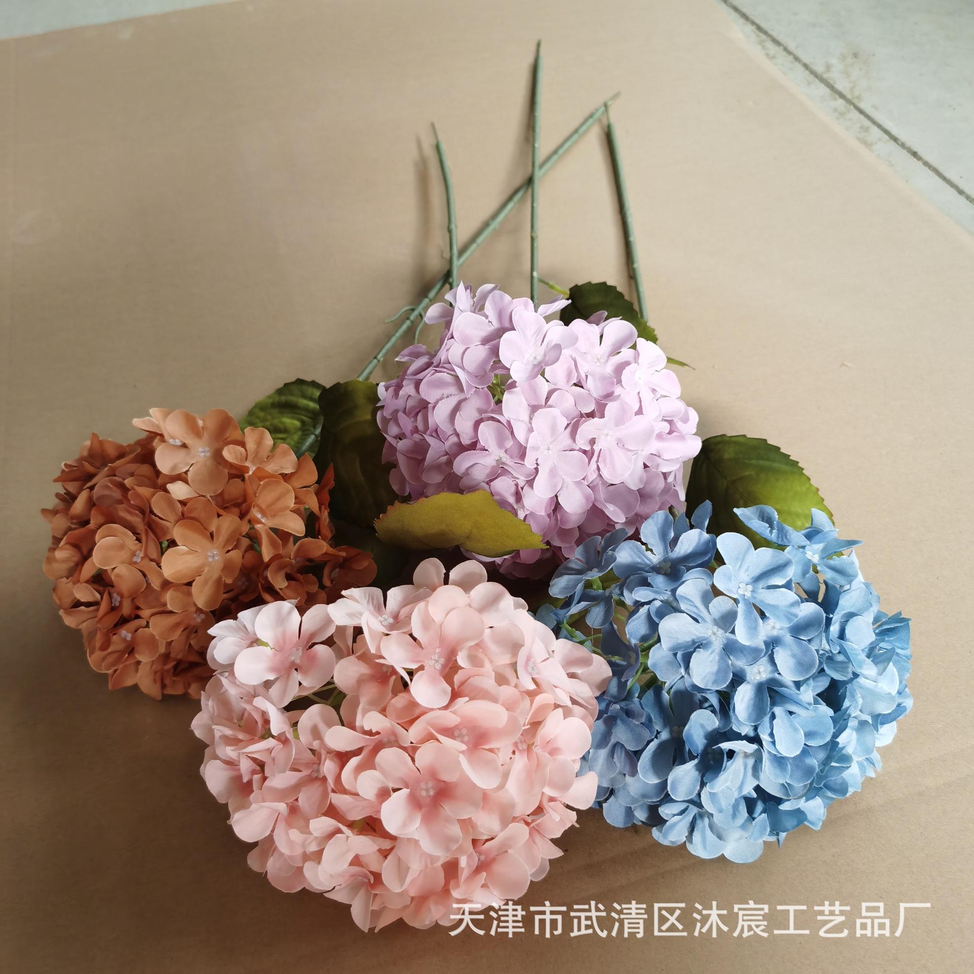 Venta al por mayor de fábrica, simulación de comercio exterior, hortensia individual, 90 piezas, decoración para el hogar, arreglo floral, hortensia europea