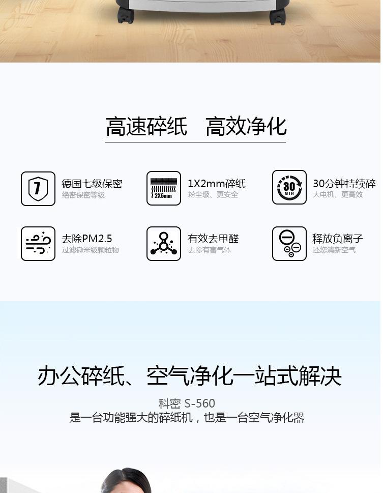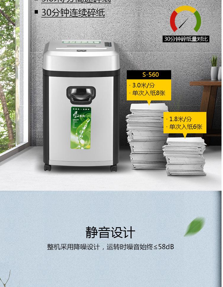 KMI S-560 destructora de papel oficina comercial hogar esterilización purificación trituradora de archivos altamente confidenciales