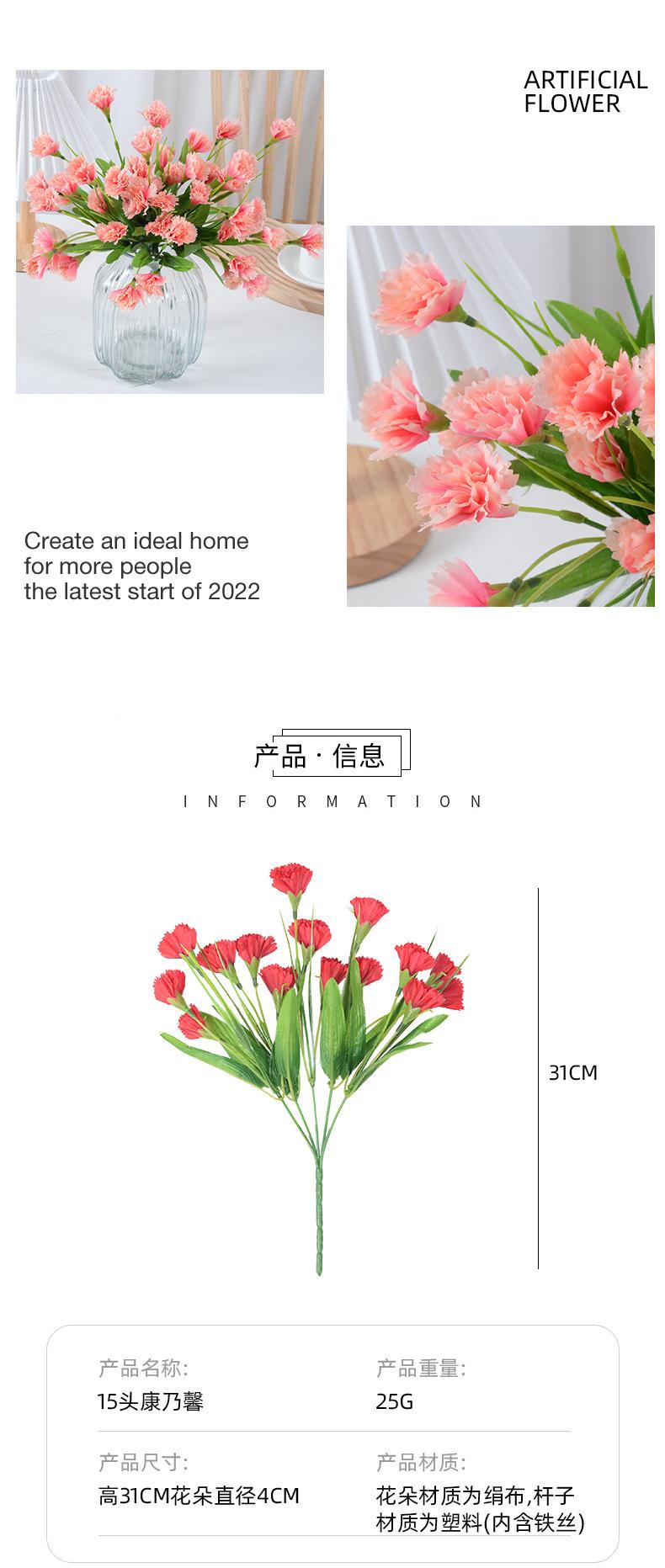 15 claveles artificiales para decoración del hogar, bodas, pequeñas flores de seda artificial, venta al por mayor.