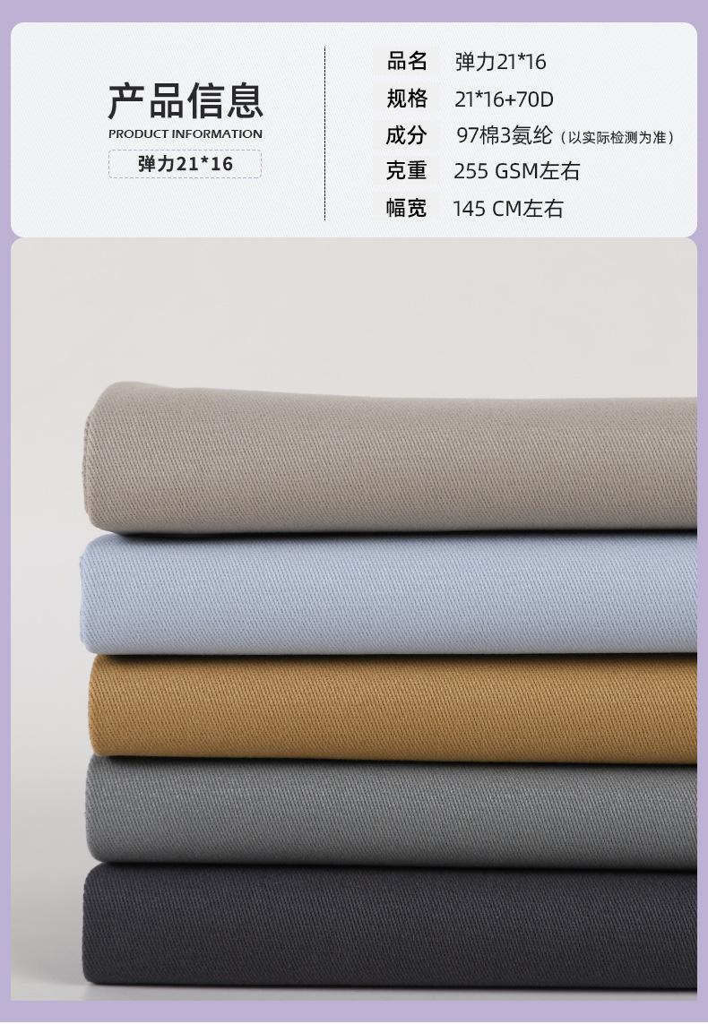 Fabricante en stock 21*16 + 70D carbono molino elástico hilo tarjeta tejido sarga elástico tejido para pantalones casuales