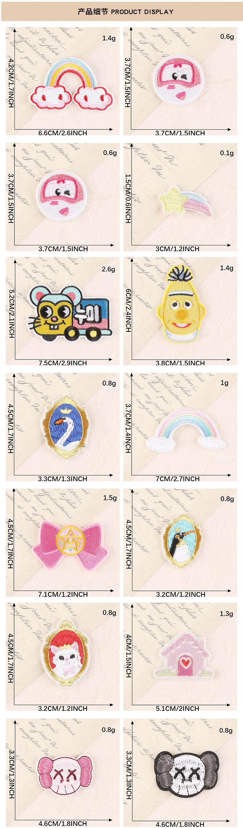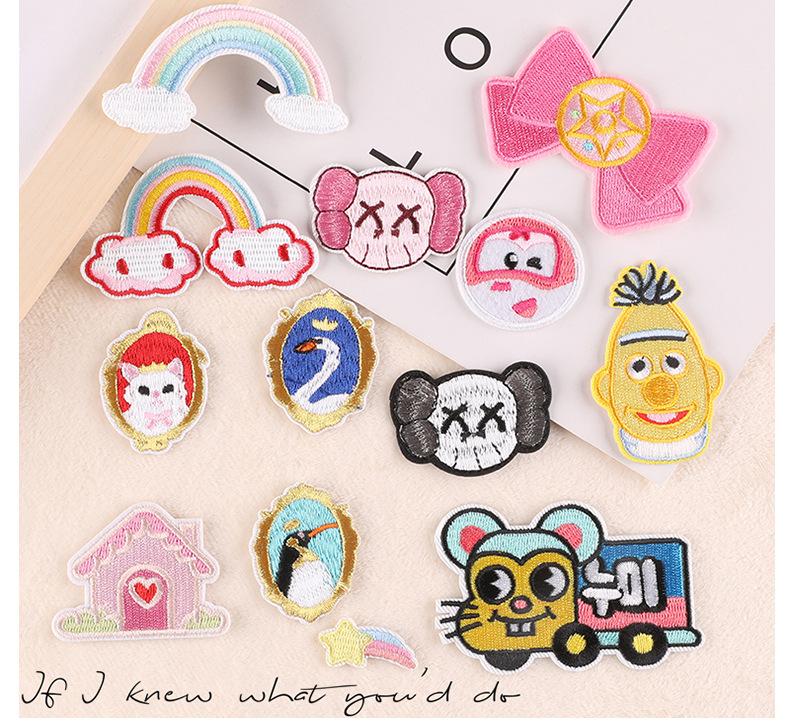 Etiqueta de bordado por computadora, pegatinas de tela de dibujos animados, accesorios de ropa para niños, parches adhesivos, accesorios, accesorios de ropa, pegatinas de tela bordadas
