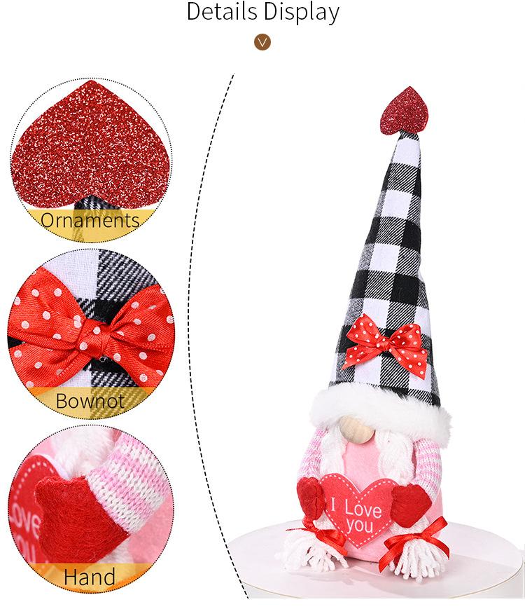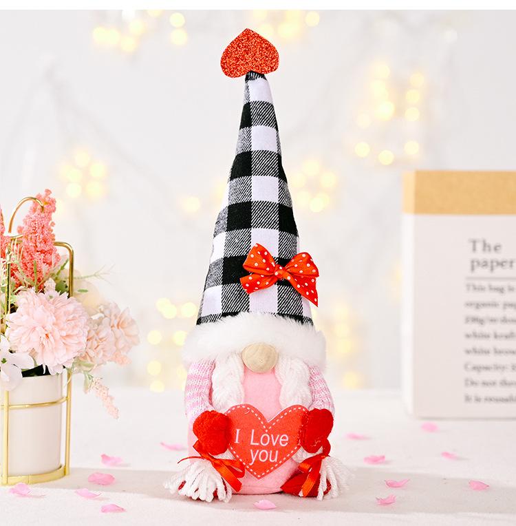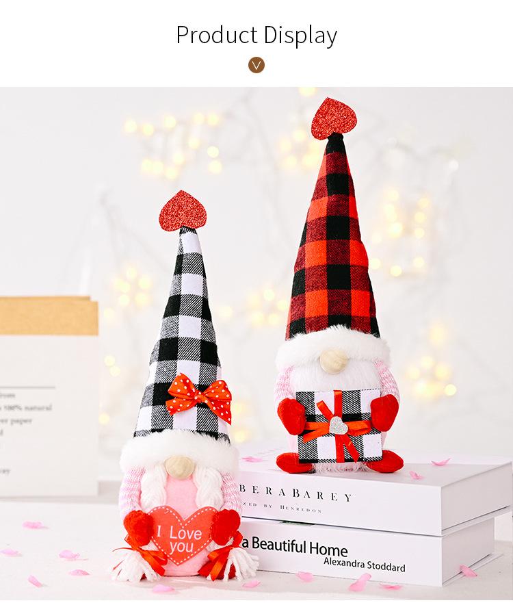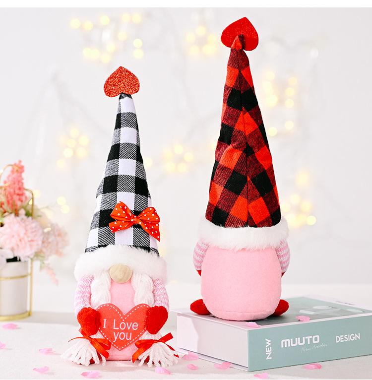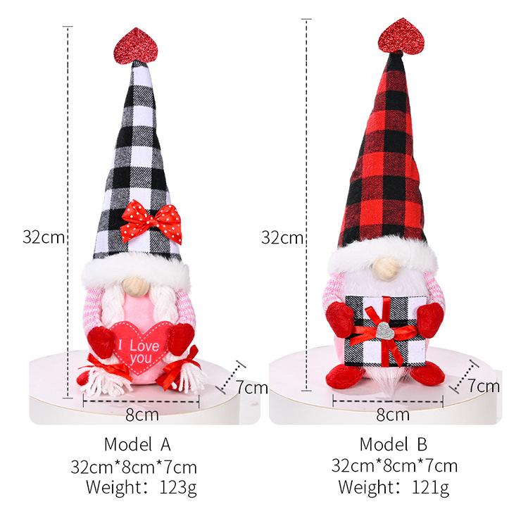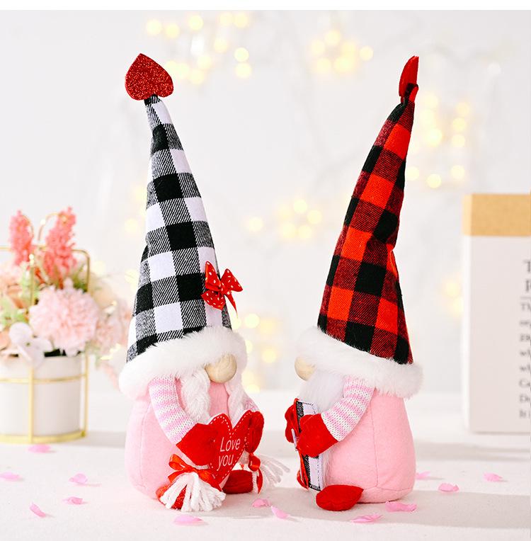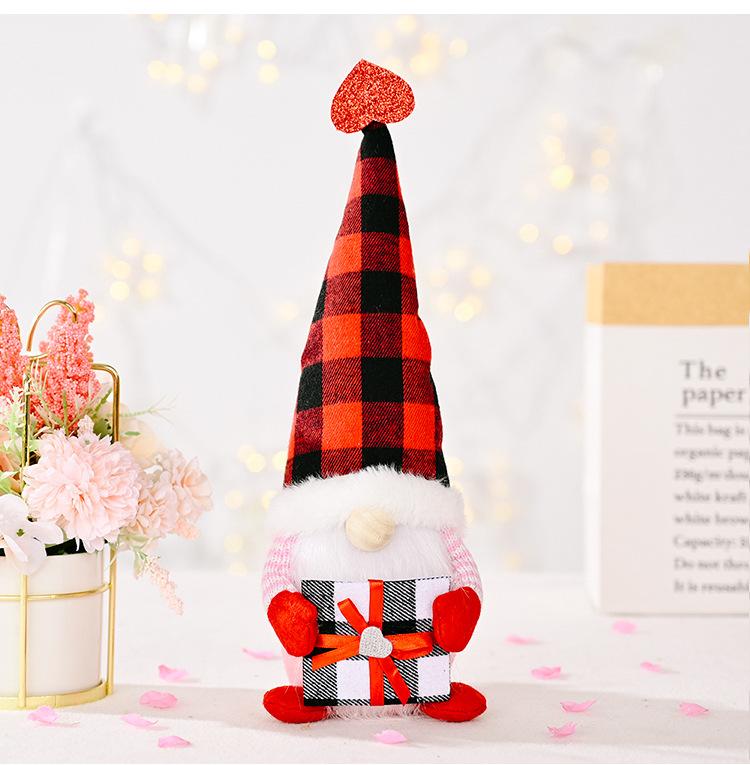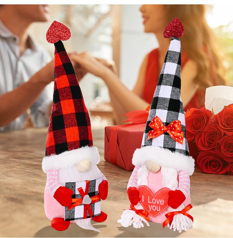 Sobre transfronterizo nuevo de San Valentín Día de la Madre enrejado rojo y negro gnomo muñeco fino muñeco sin rostro decoración para personas mayores