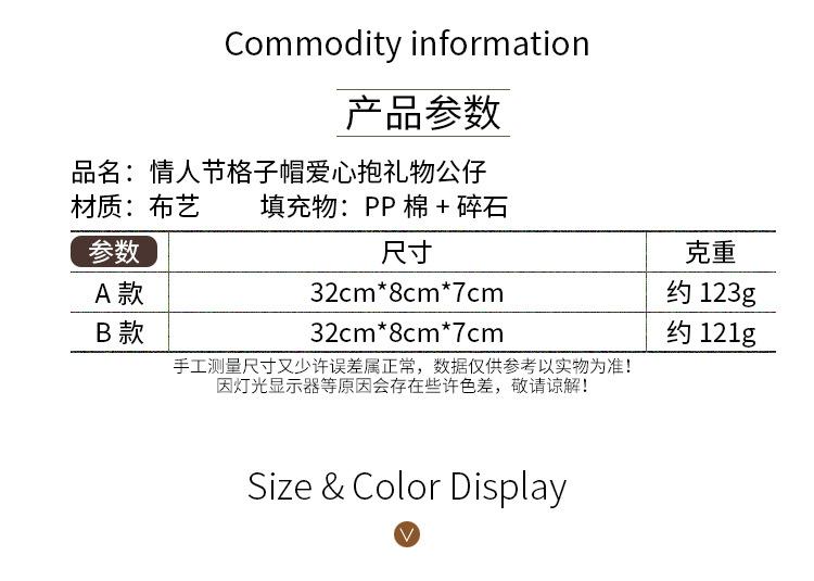 Valentine's Day red and black plaid hat Doll Gift, Valentine's Day black and white plaid hat doll love style