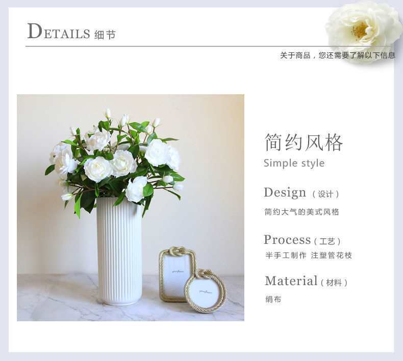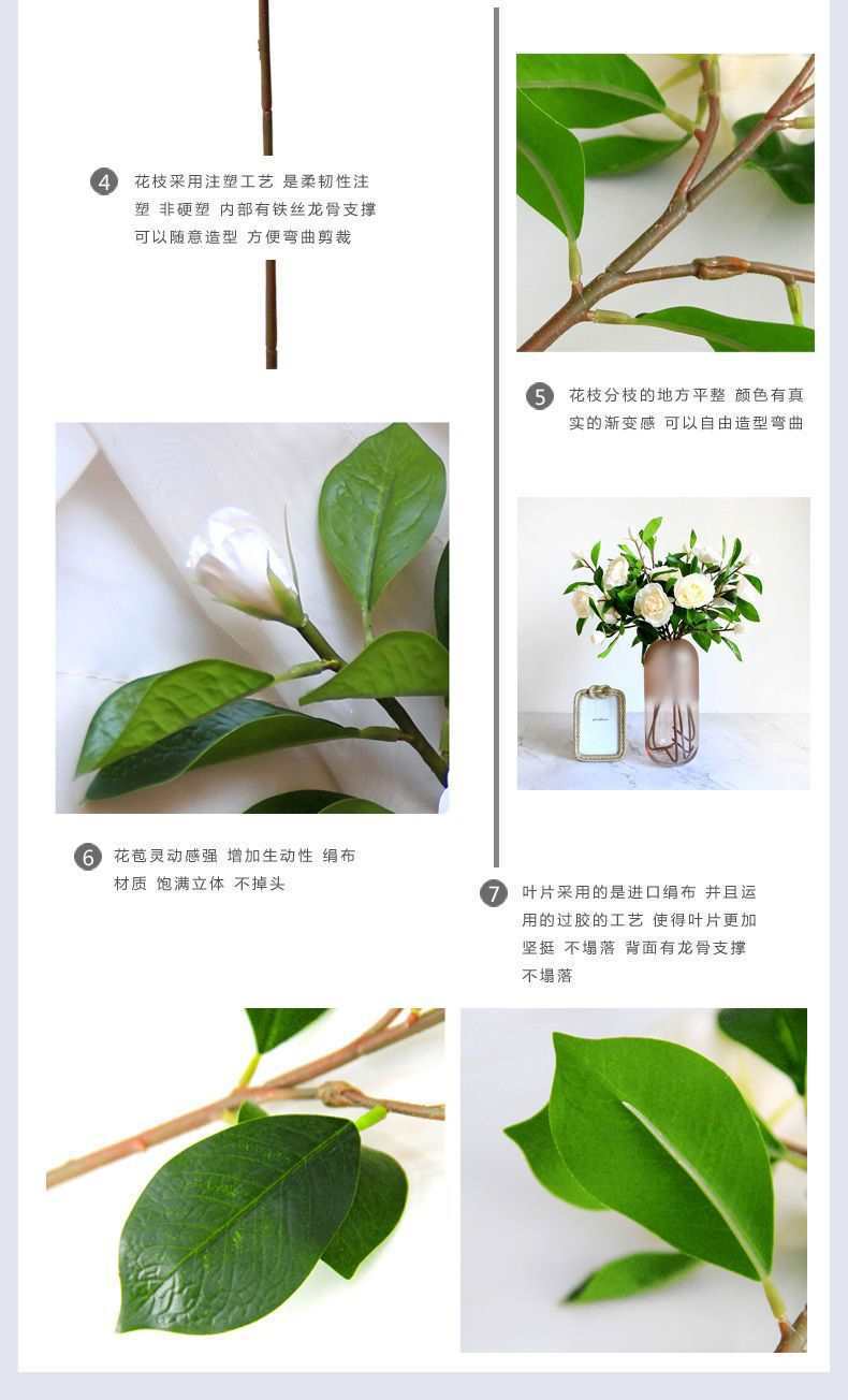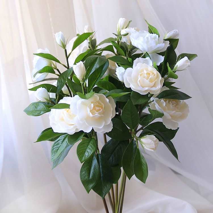 Flor de gardenia, flor artificial de seda, flor falsa, camelia, regalo para fotografía de boda, decoración para el hogar y la sala de estar, adornos