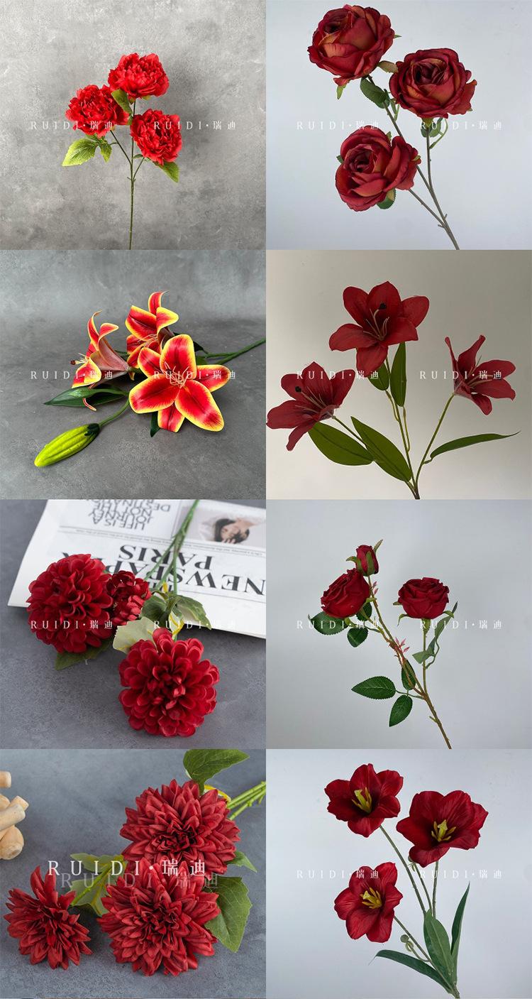 Flor de Simulación Flor Roja Decoración de Boda Proyecto Hotel Luyin Accesorios para Sesión de Fotos Flores Artificiales Flores Falsas