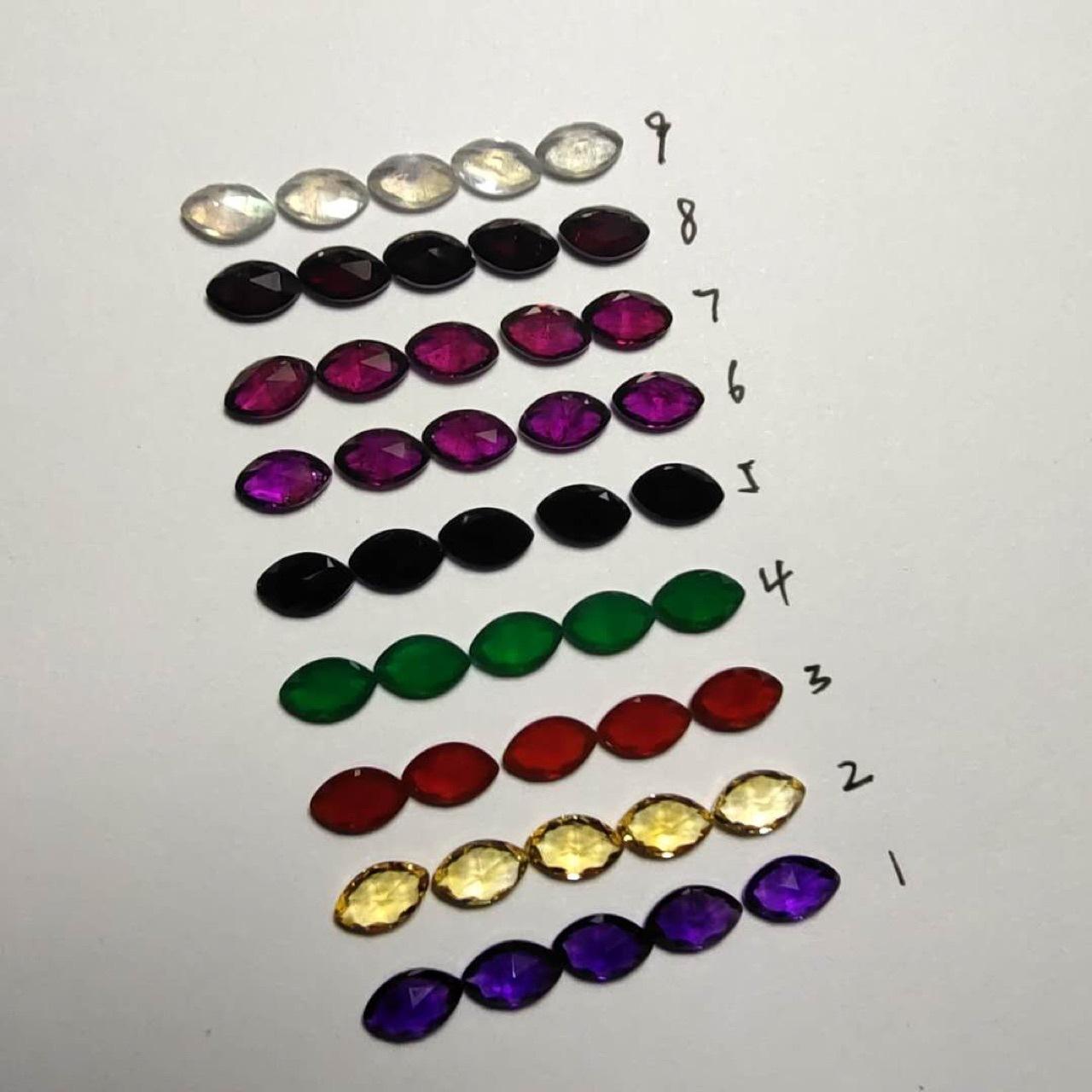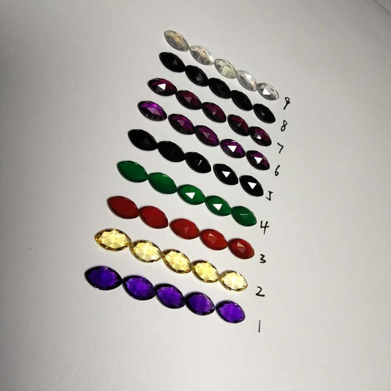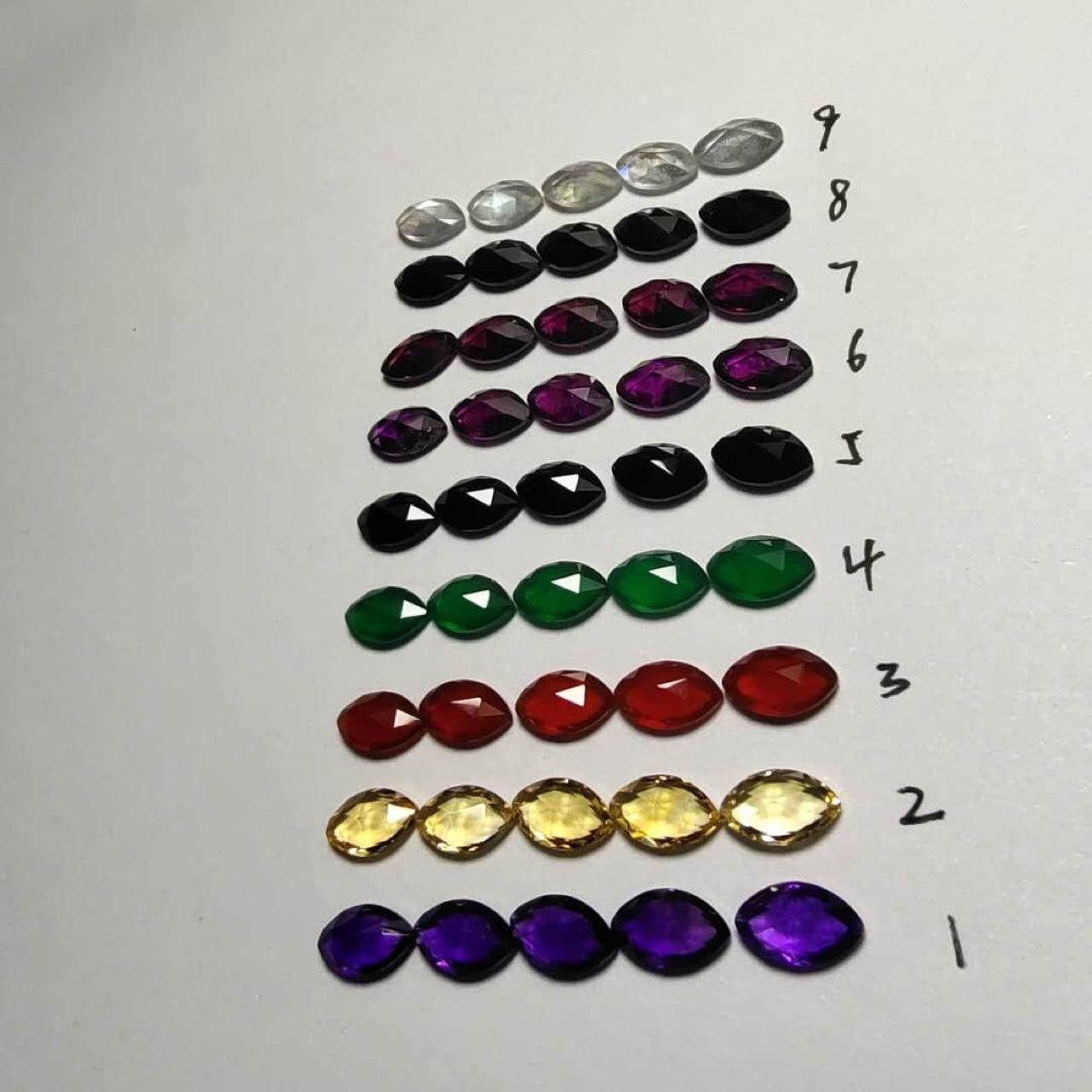 Amatista natural, cristal amarillo, ágata roja, verde y negra, magnesio, aluminio, granada, feldespato, piedra de joyería de corte rosa de ojo de caballo de 5 x 8