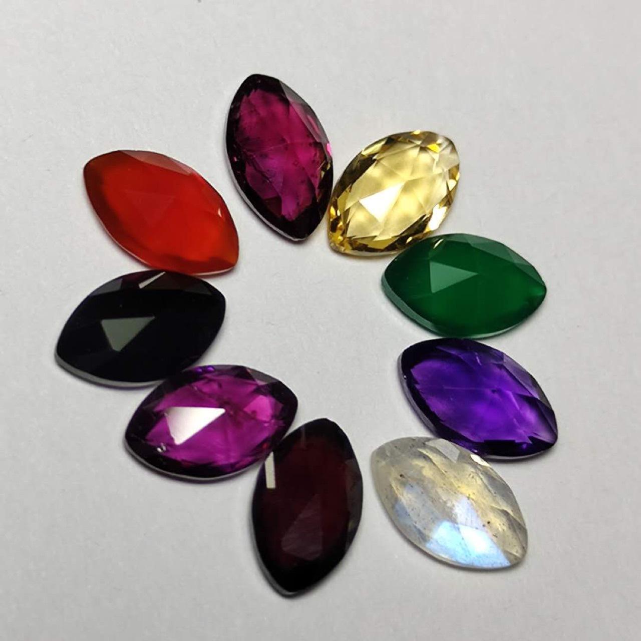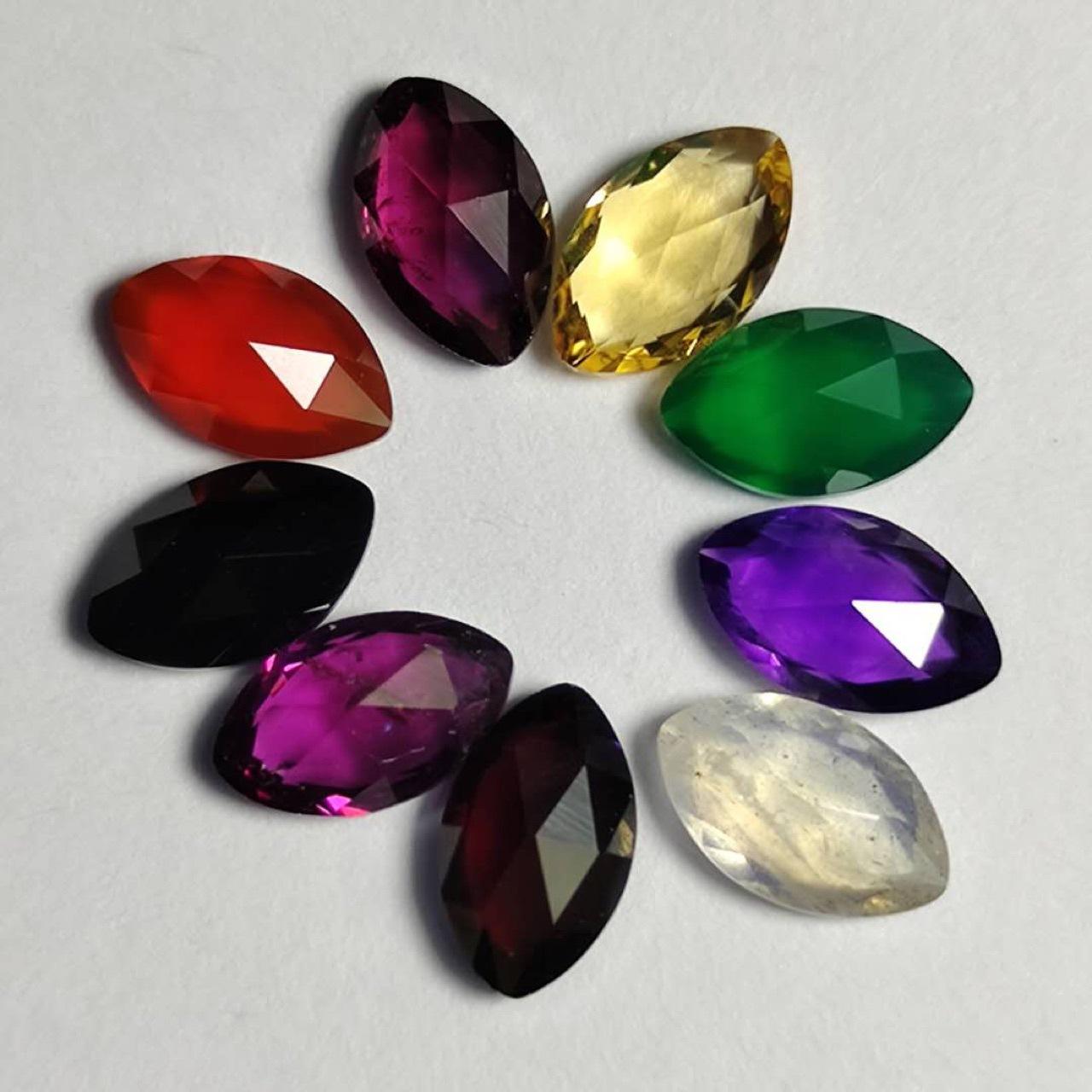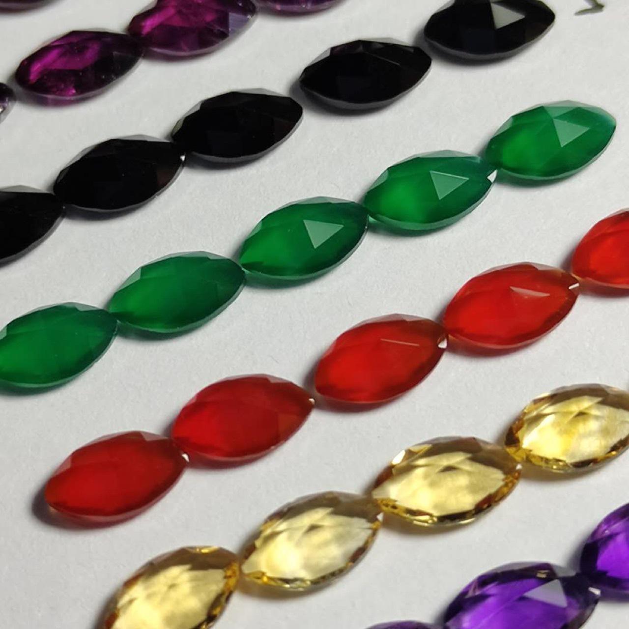 Amatista natural, cristal amarillo, ágata roja, verde y negra, magnesio, aluminio, granada, feldespato, piedra de joyería de corte rosa de ojo de caballo de 5 x 8