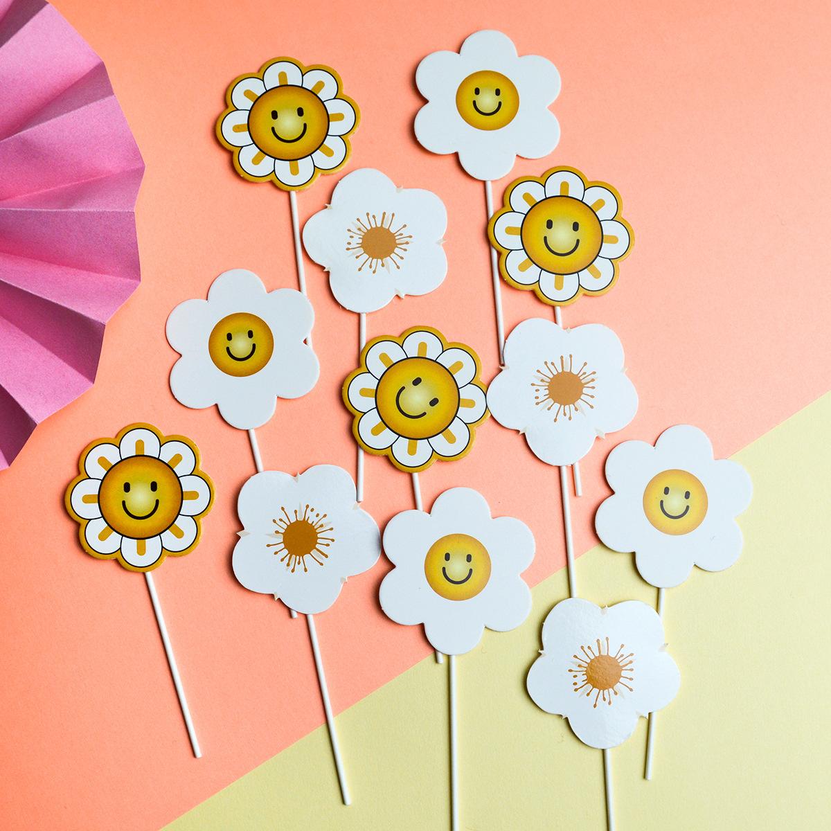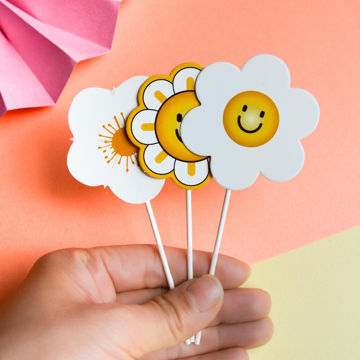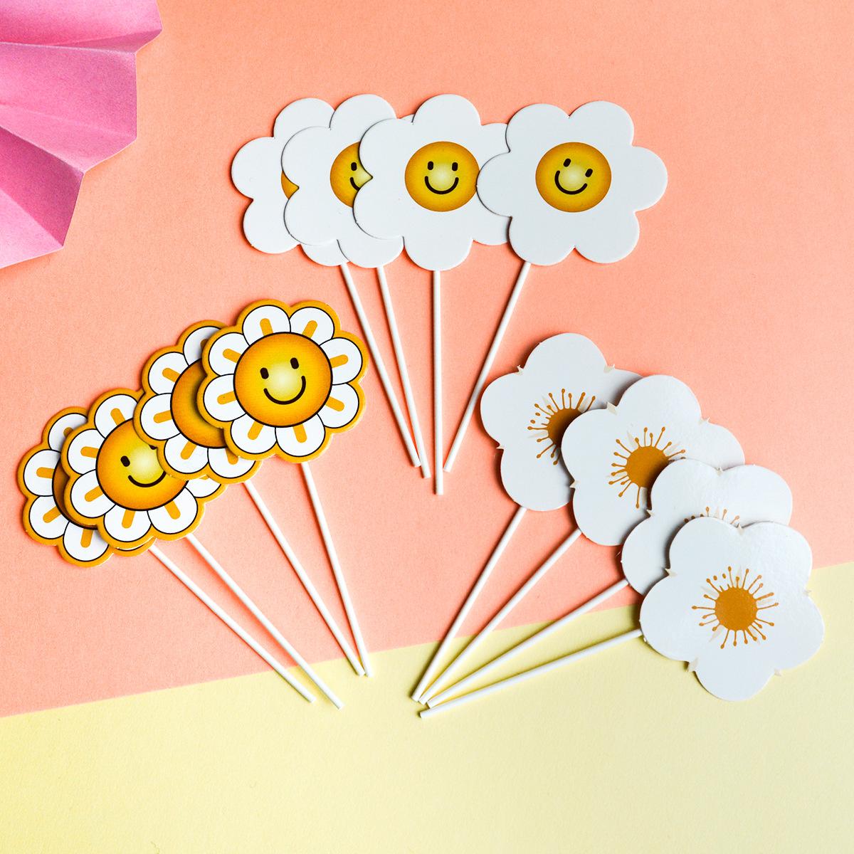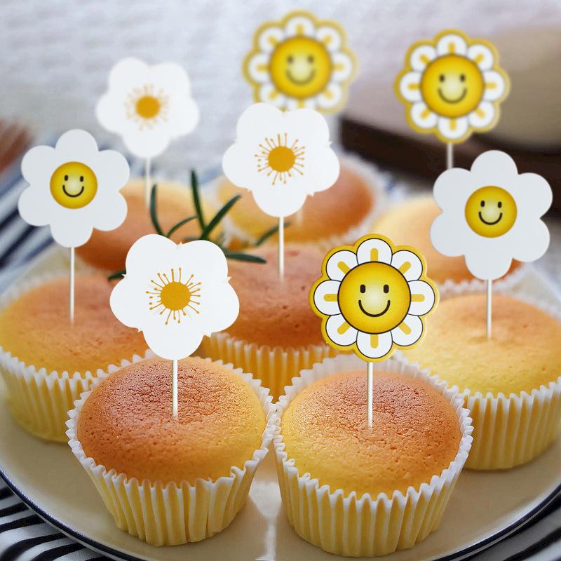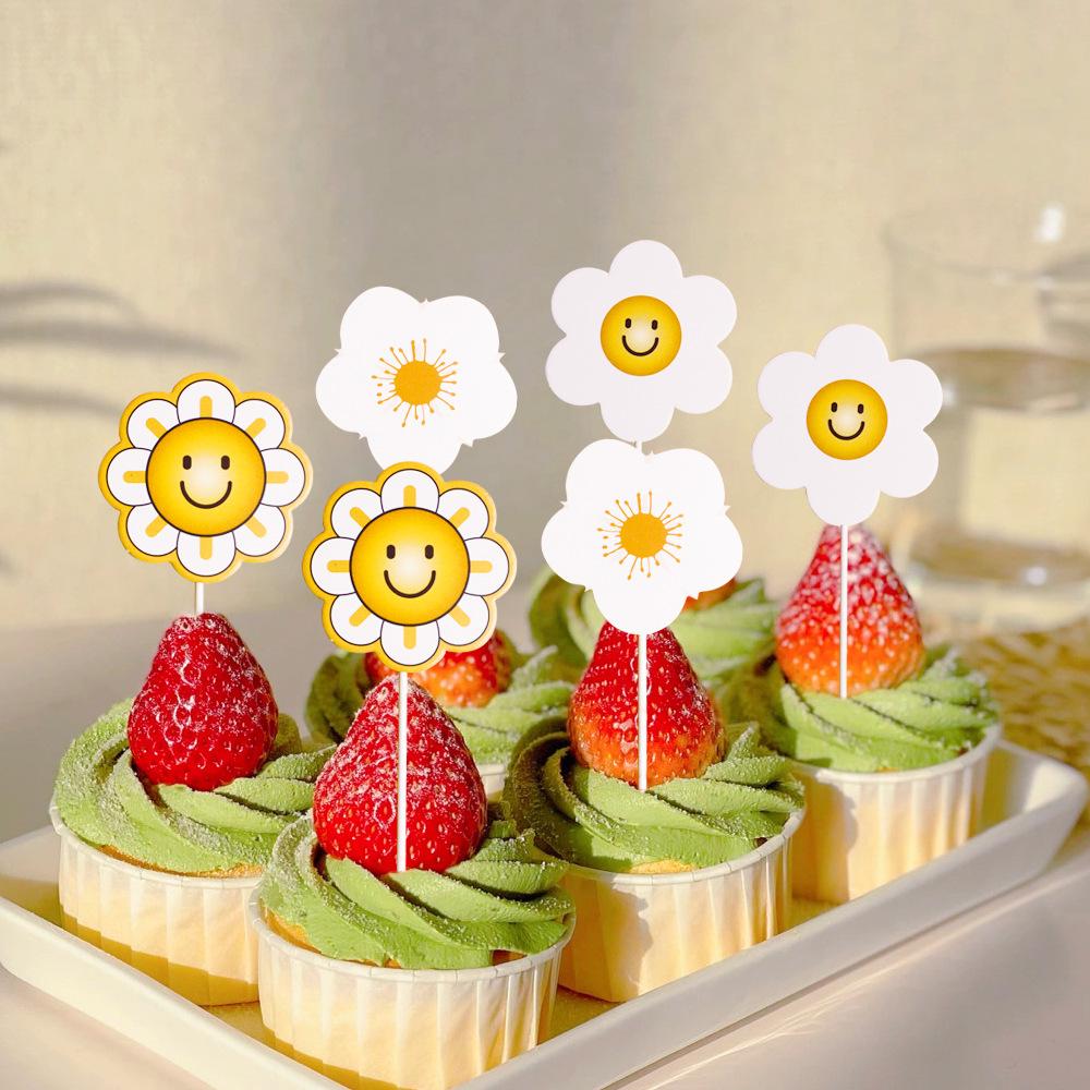 Compra Venta al por mayor lindo girasol cara sonriente flor horneado pastel de cumpleaños tarjeta de inserción accesorios de decoración flor inserción tarjeta de cumpleaños al por mayor en Joom.pro