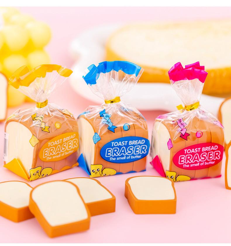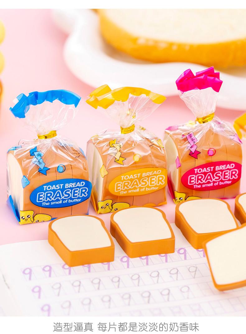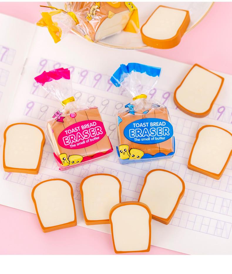 Goma de borrar de pan tostado linda para niños, caricatura, papelería divertida, pequeño regalo, goma de borrar limpia lápiz para estudiantes