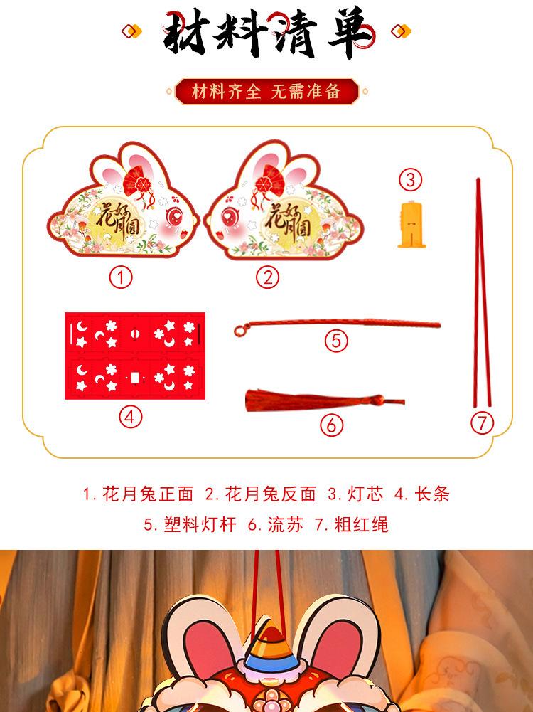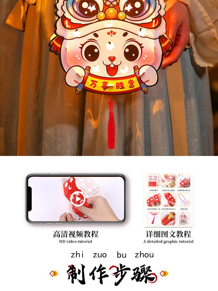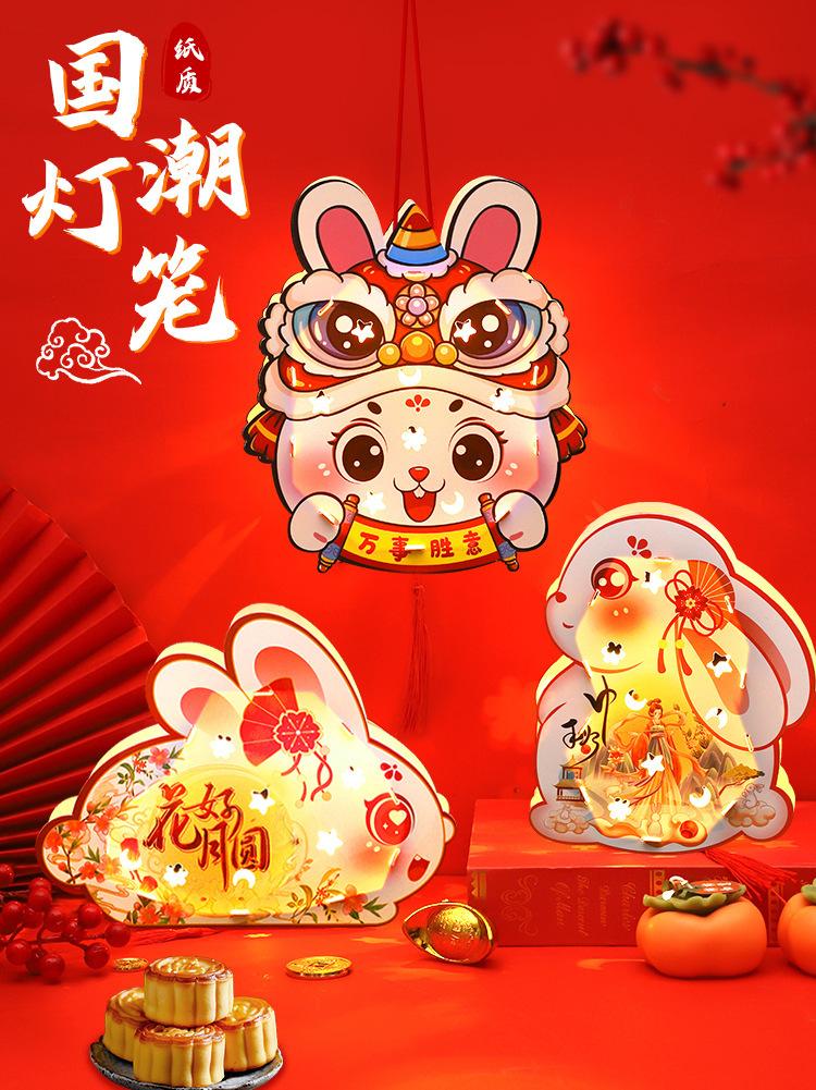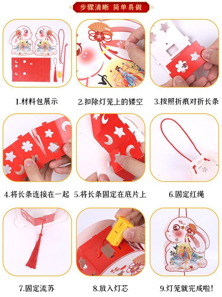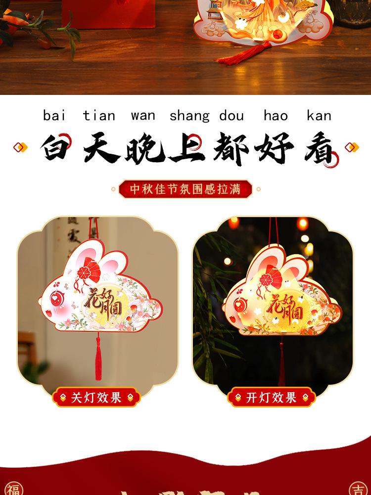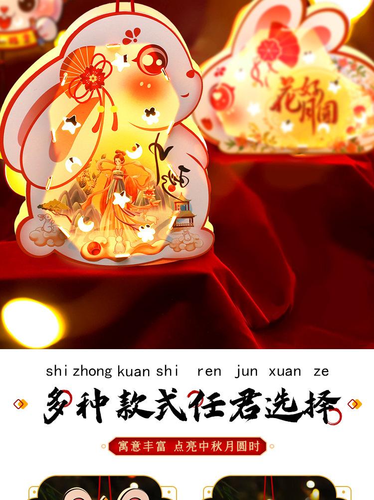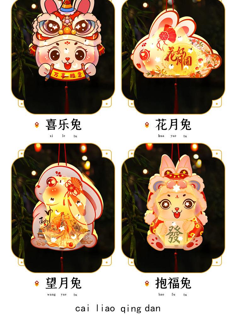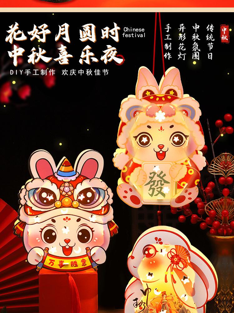 Festival del Medio Otoño Linterna de Conejo Venta al por Mayor Paquete de Materiales DIY Hecho a Mano Dibujos Animados Tendencia Nacional Juguete Cartera Luminosa Linterna de Conejo de Jade