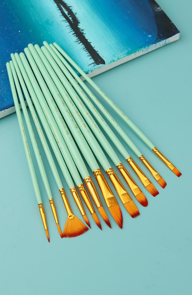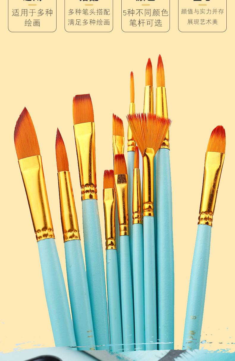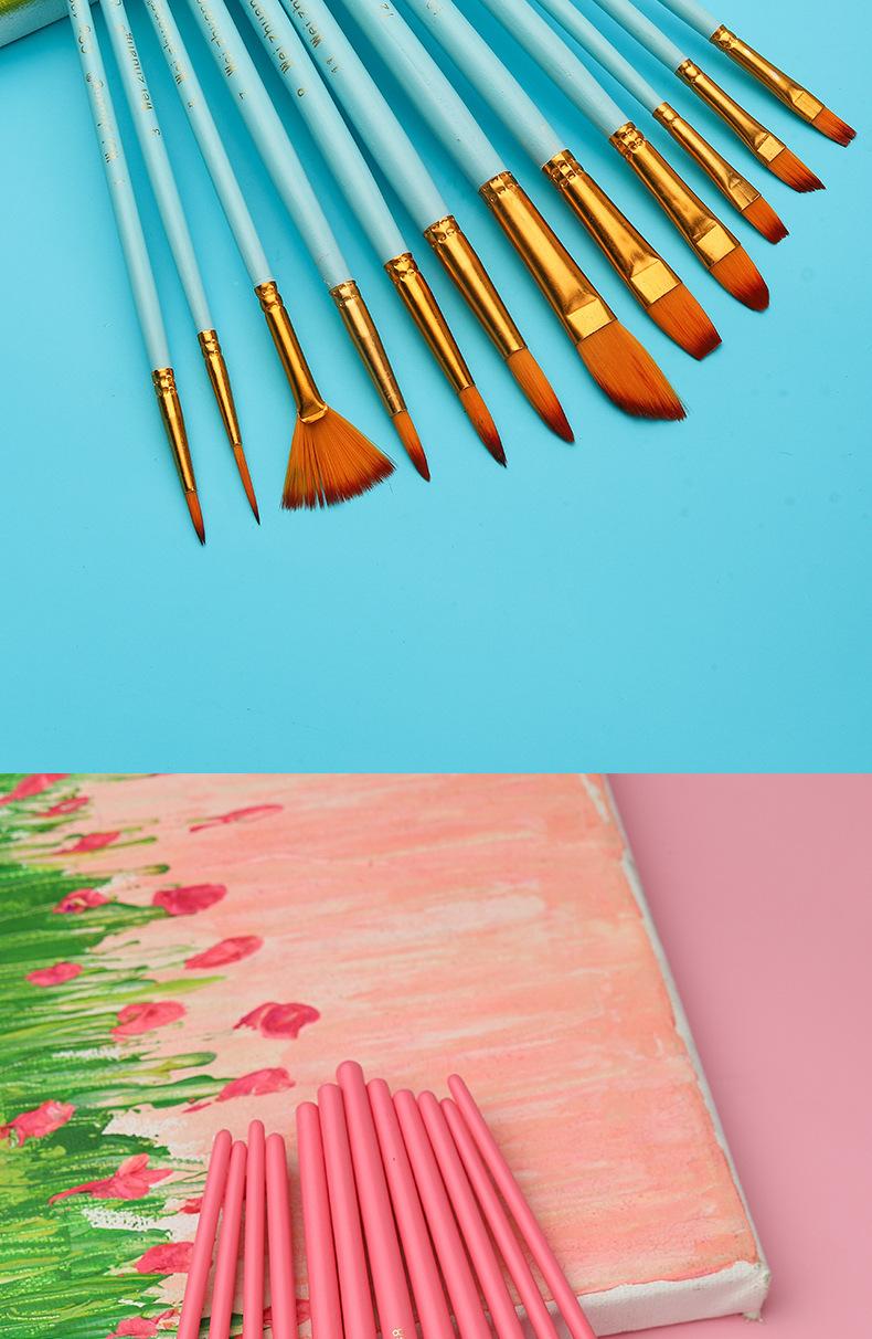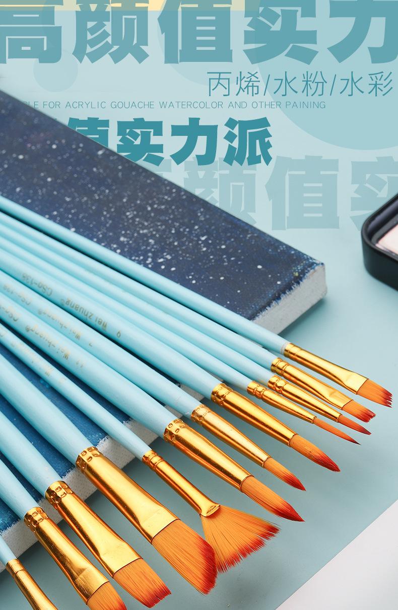 Set Mixt Transfronterizo de 12 Piezas Set de Pinceles de Punta Redonda para Acuarela Pelo de Nailon Bicolor Punta Redonda DIY Pincel Acrílico