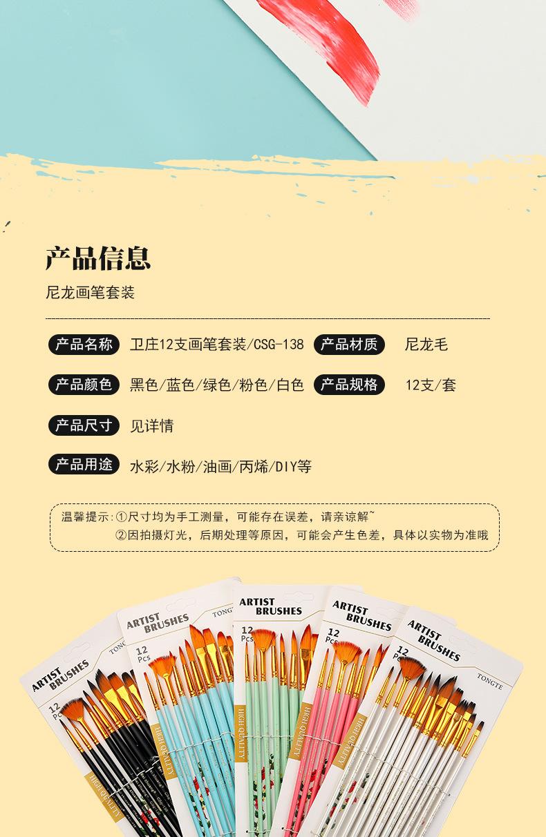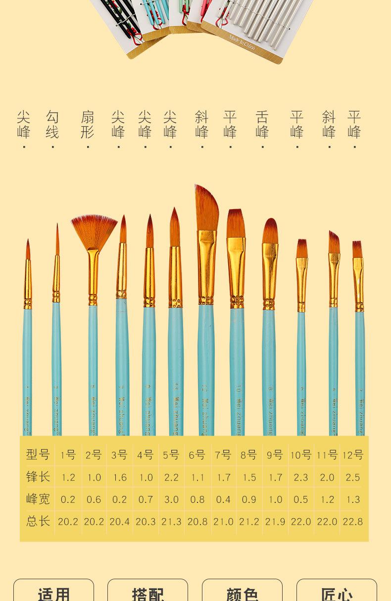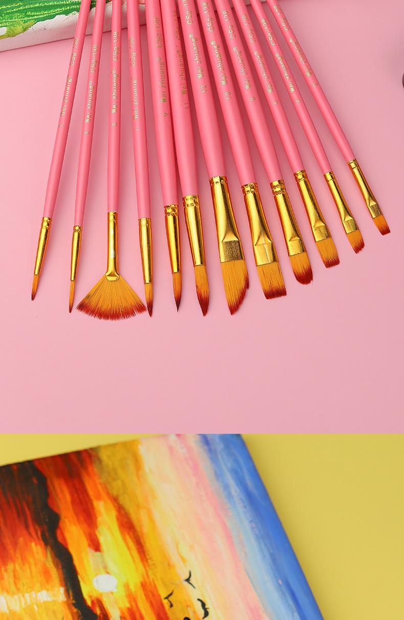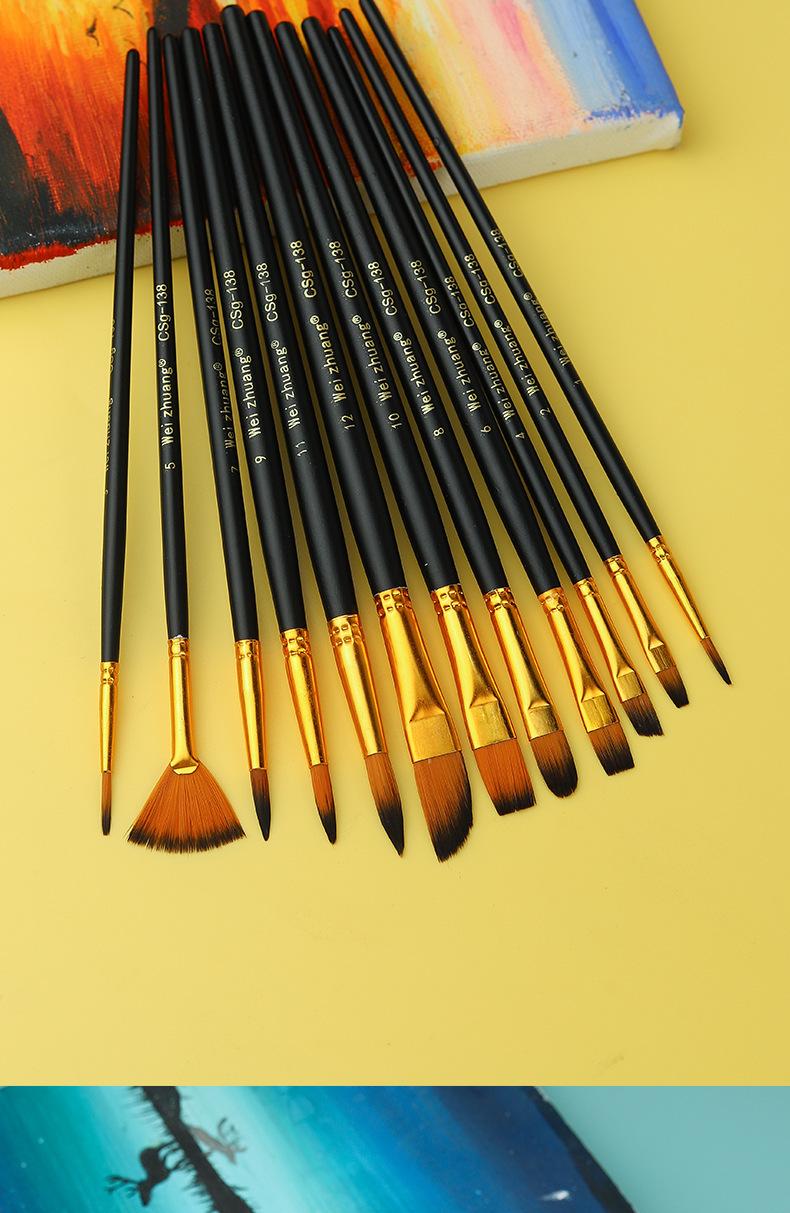 Set Mixt Transfronterizo de 12 Piezas Set de Pinceles de Punta Redonda para Acuarela Pelo de Nailon Bicolor Punta Redonda DIY Pincel Acrílico