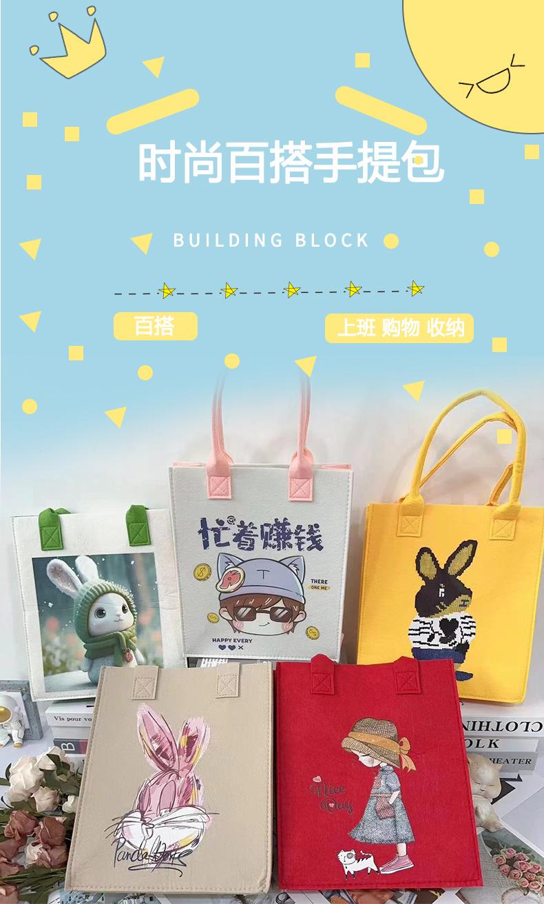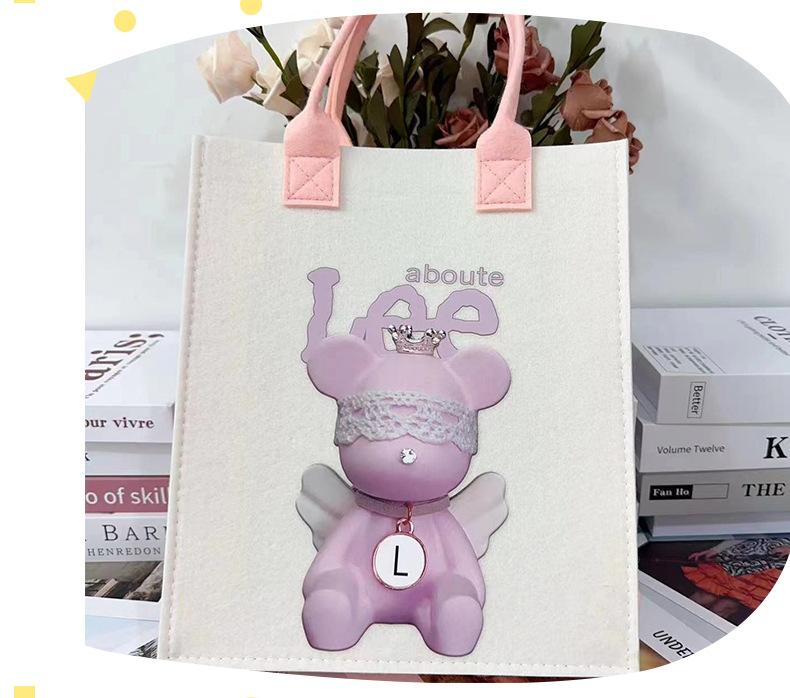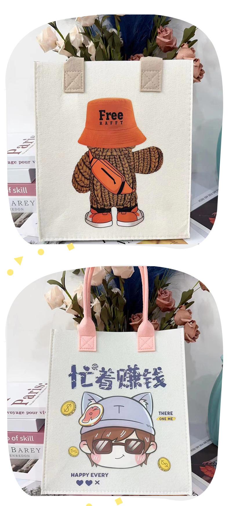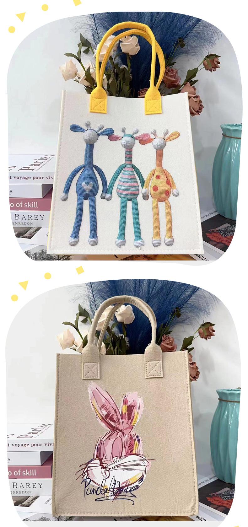Bolsa Tote Ins de Dibujos Animados Bolsa de Fieltro Bolsa Tote Estampada Gran Capacidad Regalo Publicitario DIY Creativa Pintada a Mano Doble Cara