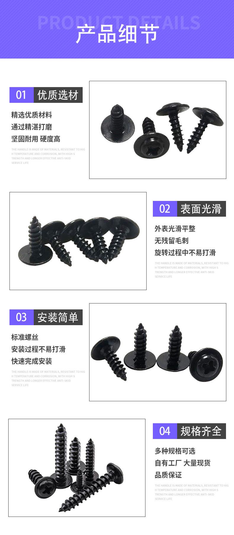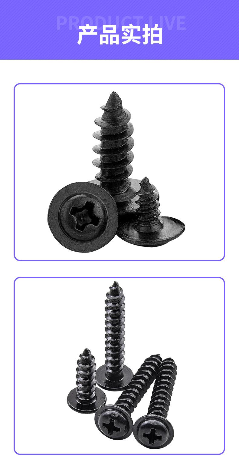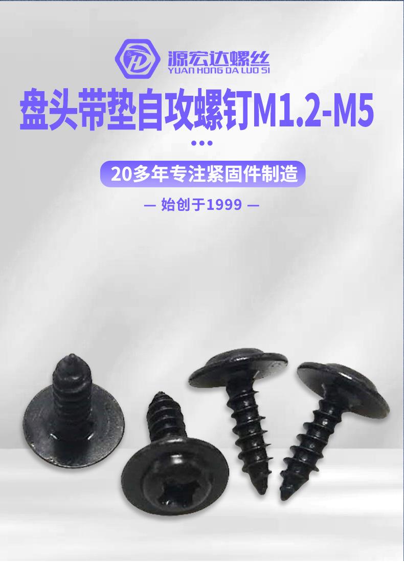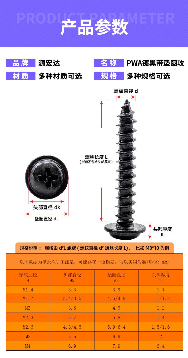 Tornillo autorroscante de cabeza redonda PWA con cabeza en cruz negra con almohadilla de cola puntiaguda M1.4-M2.3 Wasi