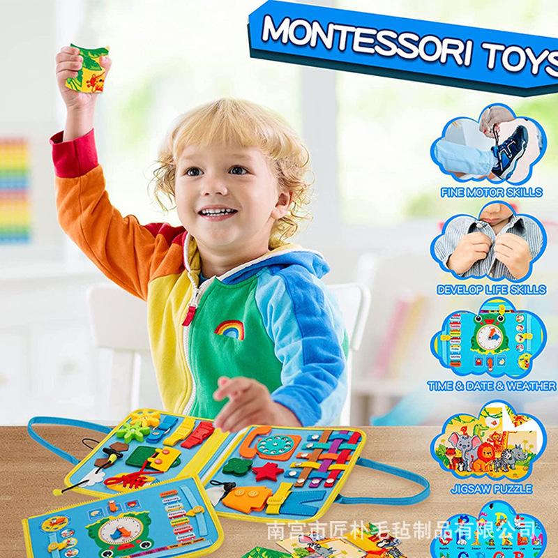 Tablero de Fieltro para Práctica Infantil Juguetes de Educación Temprana Habilidades para la Vida Vestirse y Atar Cordones Tablero de Aprendizaje Tablero Ocupado para Niños