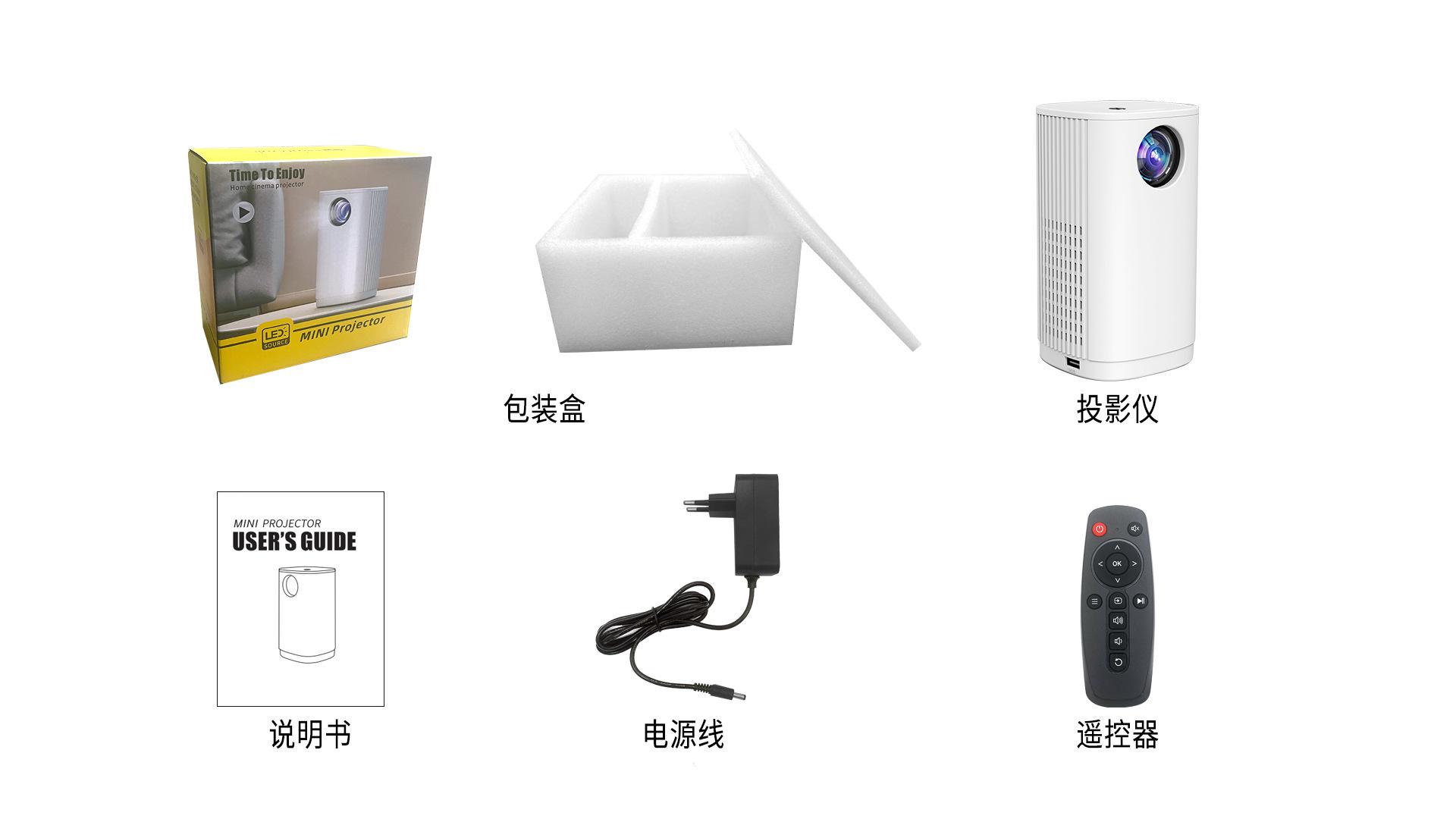 Lista de embalaje: host del proyector + adaptador de corriente + control remoto + manual de instrucciones