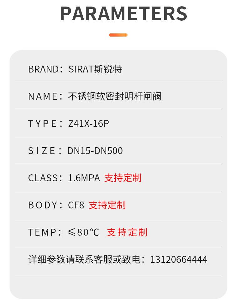 Válvula de compuerta de vástago abierto con sello blando de acero inoxidable Z41X-16P, brida con sello de asiento elástico RRHX, válvula de suministro y drenaje de agua 304