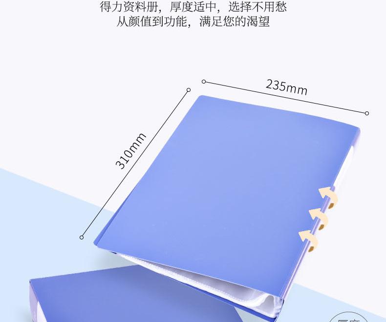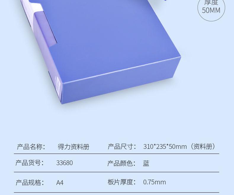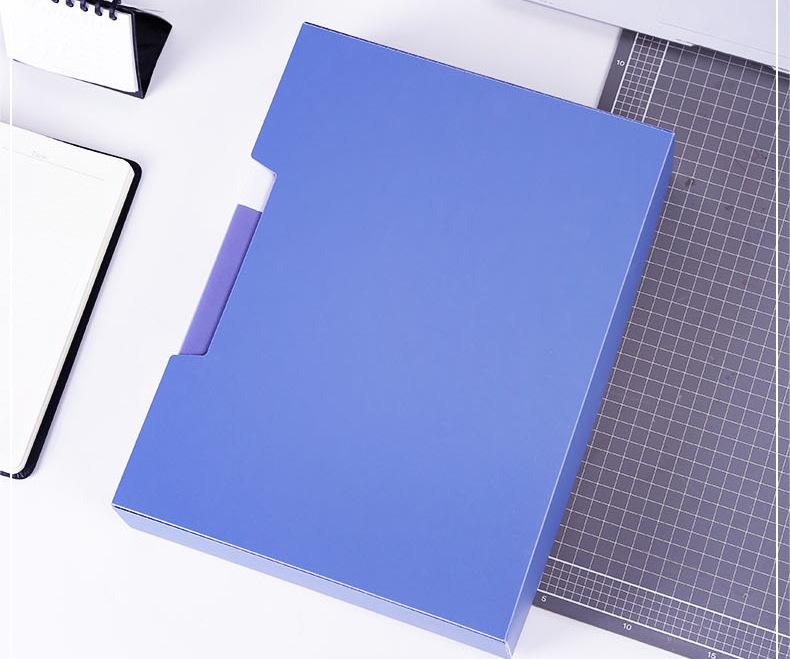 Deli 33680_80 páginas anidadas Libro de Datos (azul) Caja de almacenamiento de archivos A4 de papelería de oficina de gran capacidad