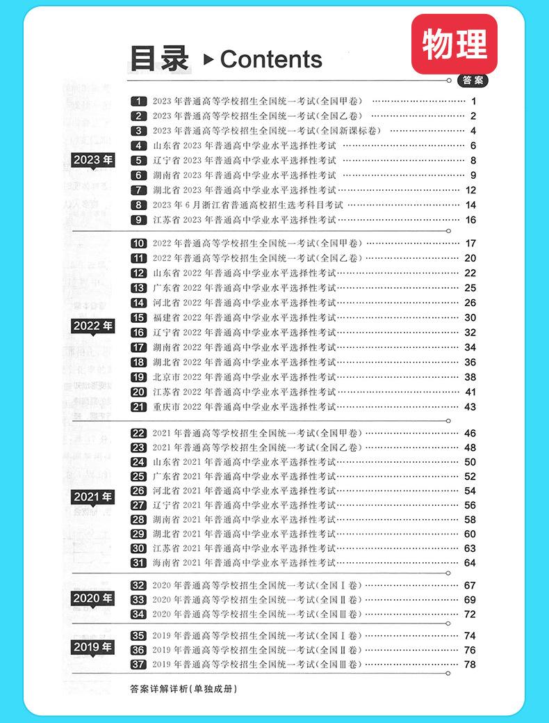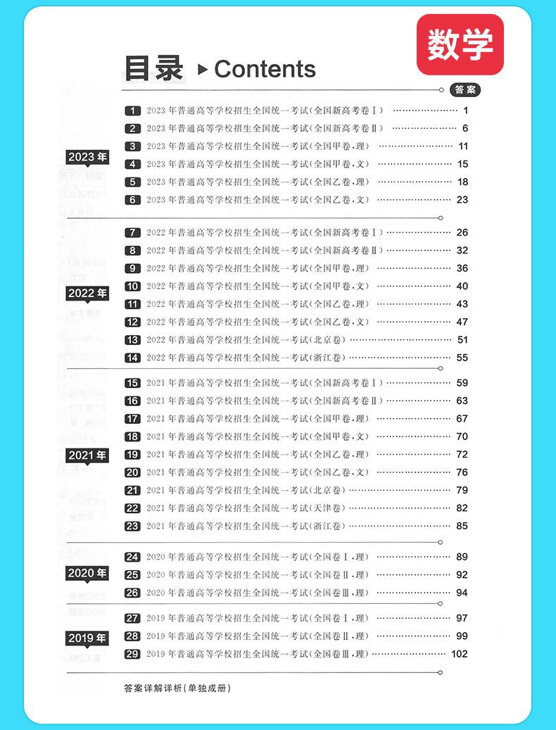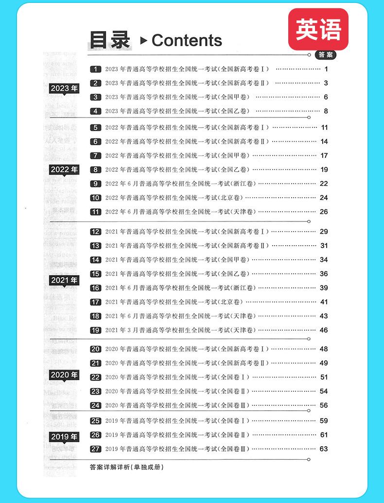 Recopilación de preguntas reales del examen de ingreso a la universidad de cinco años, documento nacional, chino, matemáticas, inglés, física, química, biología, examen de ingreso a la universidad, documento de preguntas reales