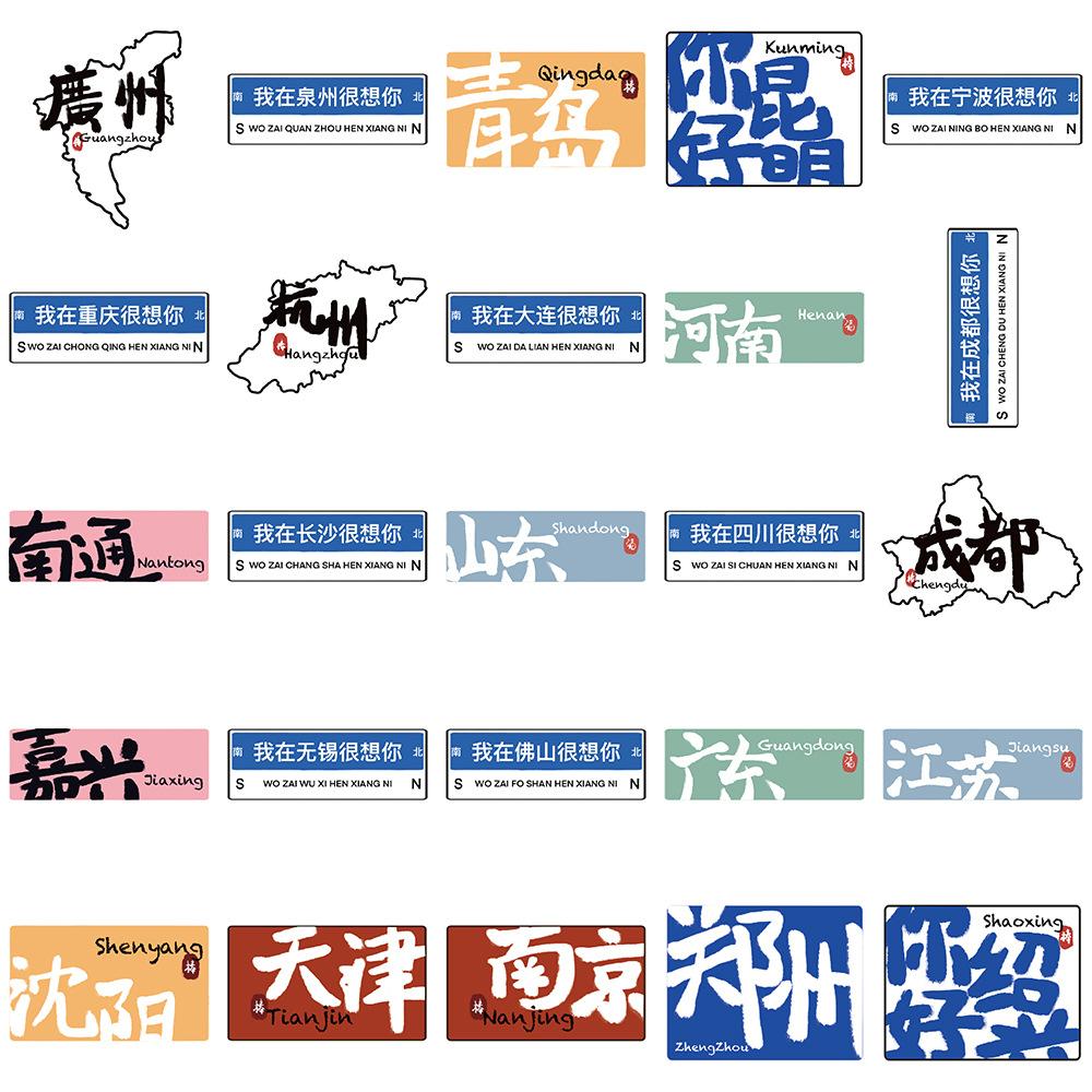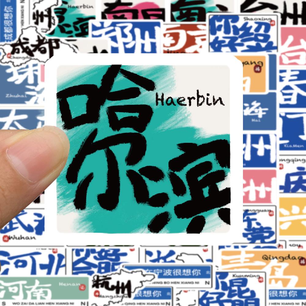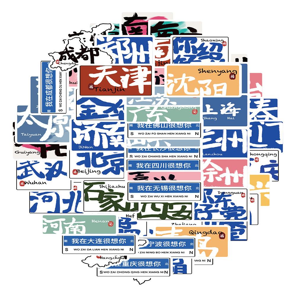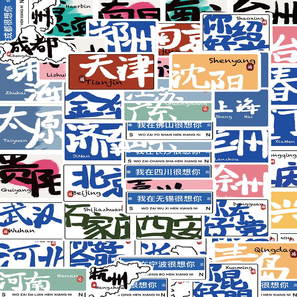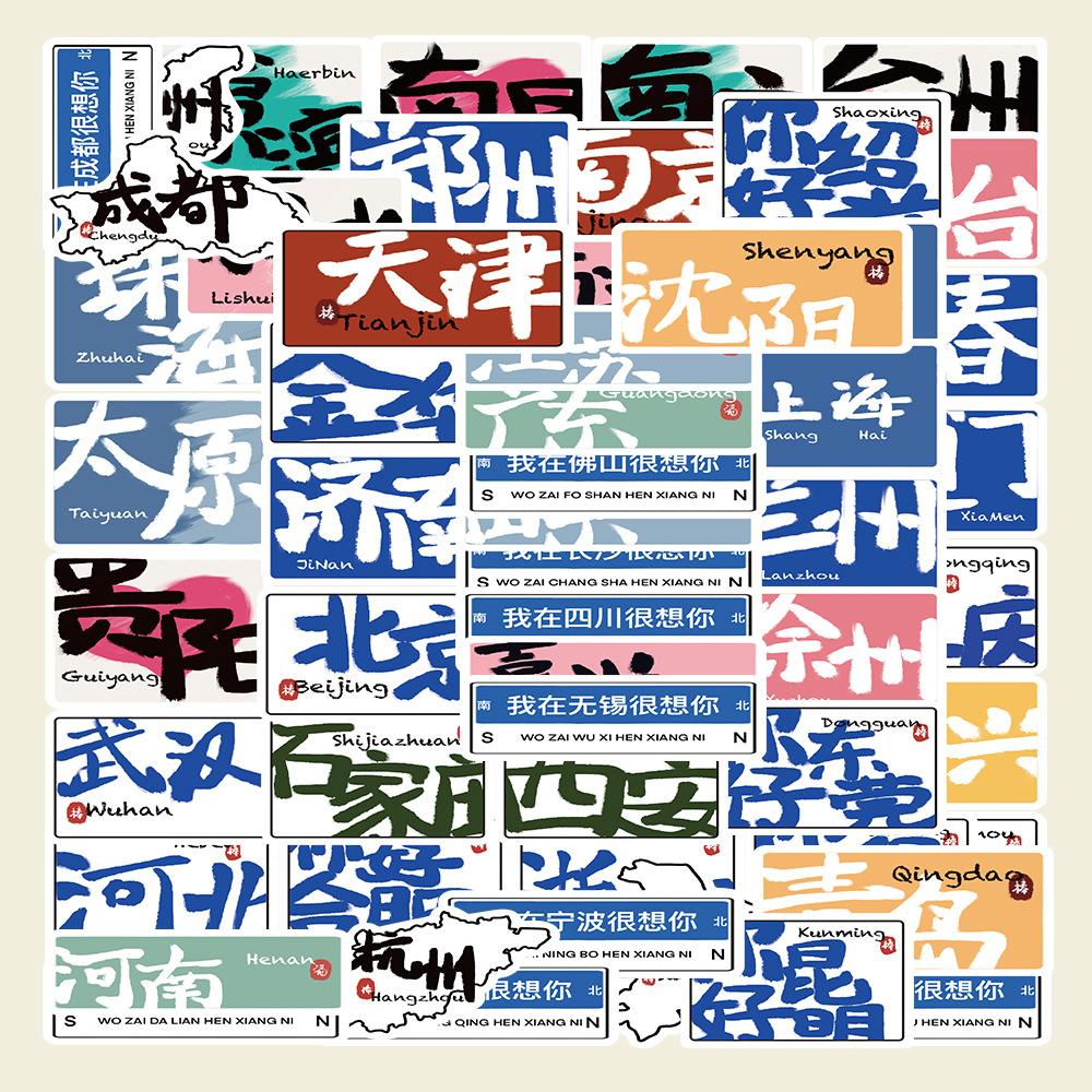55 pegatinas de grafiti con el nombre de la ciudad, impermeables, decorativas, para tazas, maletas, cuadernos, neveras, cuentas de mano, papelería.