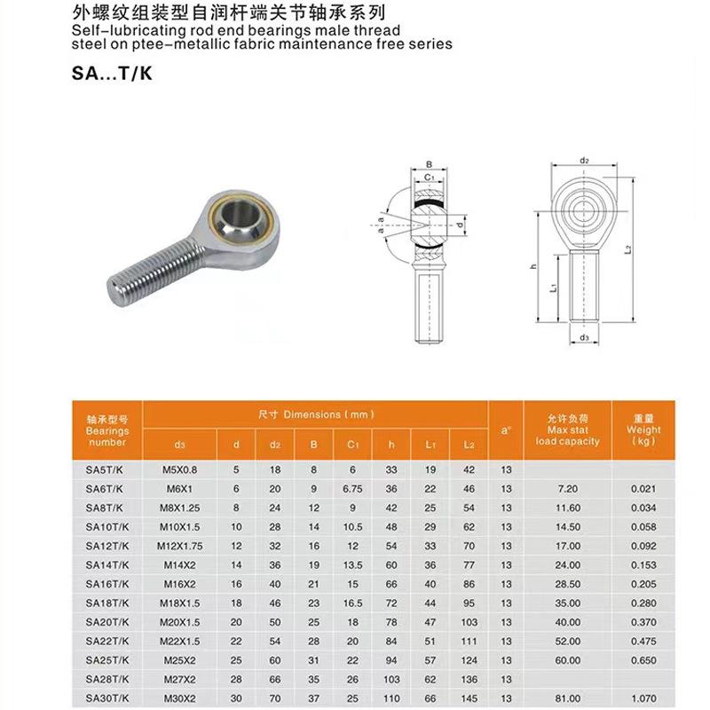 Información del productoNombre del producto: SA14T/KDiámetro interior/diámetro exterior/altura: 14*36*19 mmMaterial del producto: acero para cojinetes.Ventajas del producto: duradero y no se atasca.