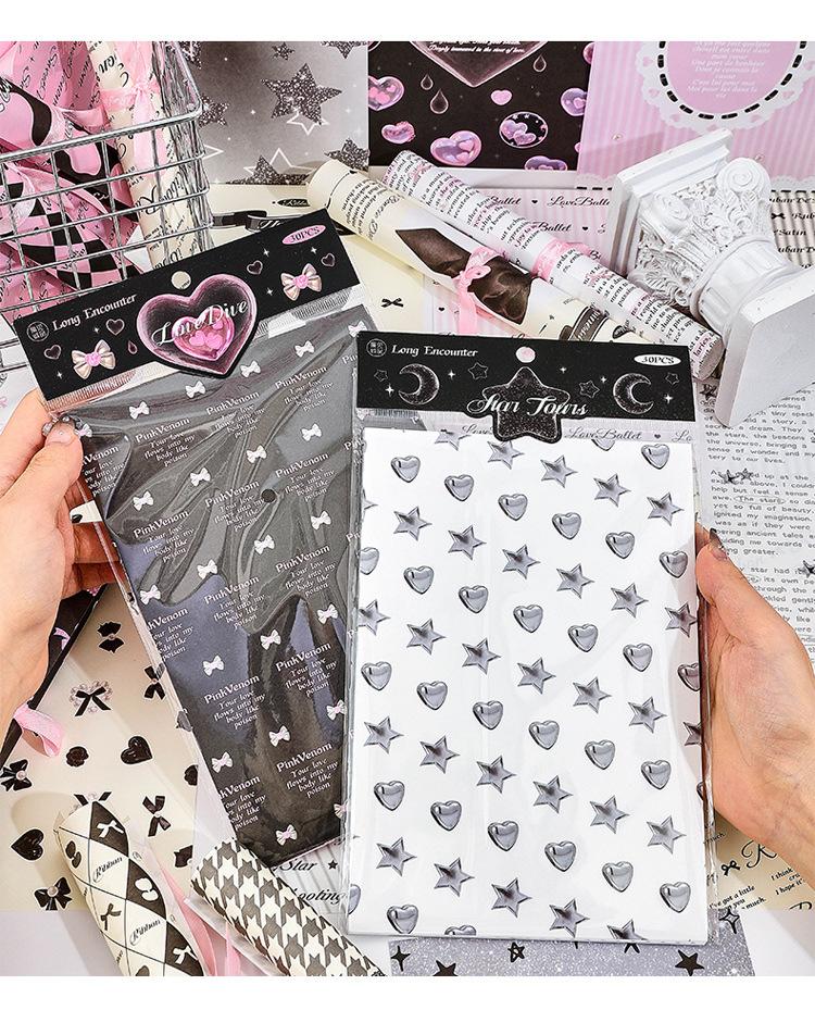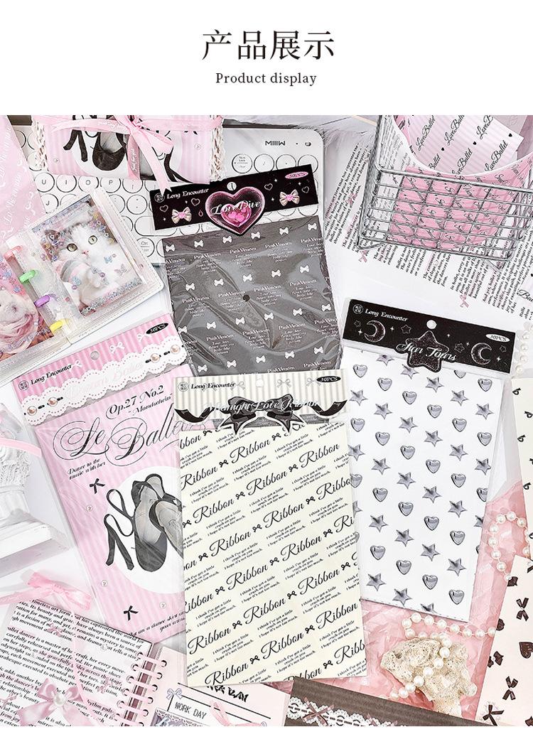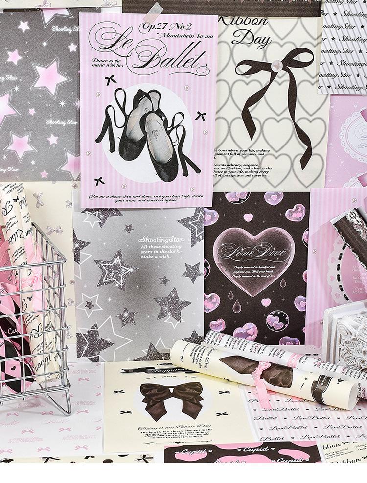 Papel de notas con base de collage no pegajoso para cuenta de mano de chica fresca y dulce retro americana de largo encuentro