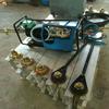 La máquina vulcanizadora consta de la máquina principal (1, bastidor, 2, dispositivo de sujeción, 3, plato, 4, tornillo, 5, tuerca, 6, arandela, 9, 2 placas de aislamiento térmico, 10, placa calefactora superior, 14, placa calefactora inferior, 15, 1 placa hidráulica), 7, manguera de alta presión, 8, bomba de prueba, 11, cable secundario, 12, caja de control eléctrico, 13, cable primario.