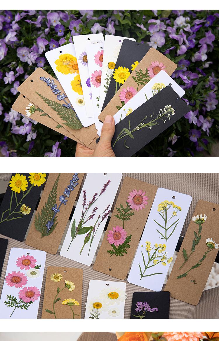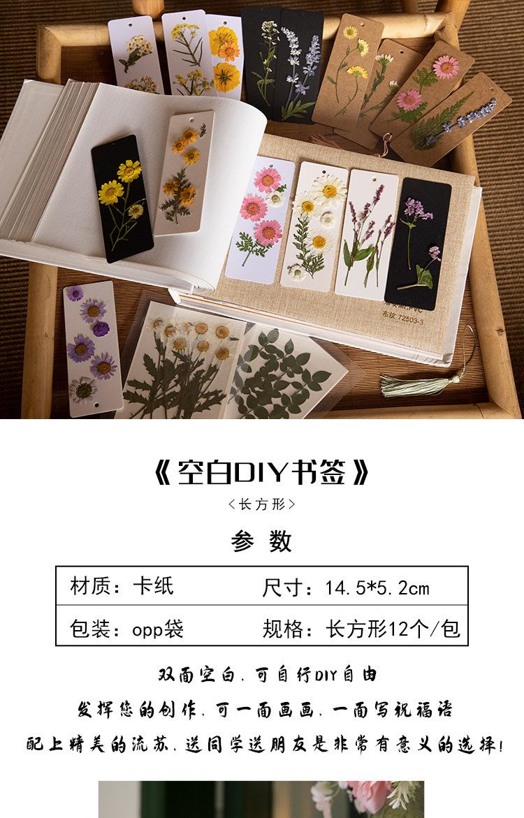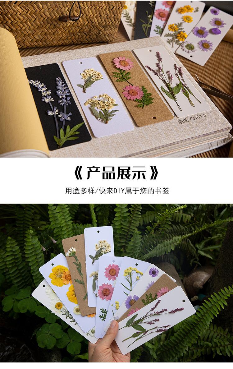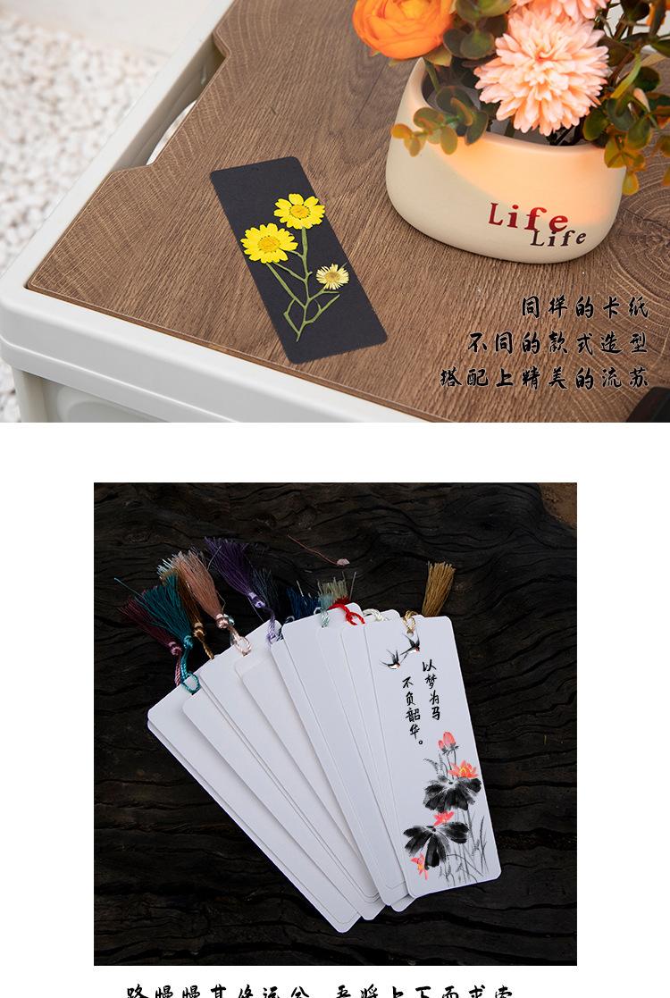 Separador en blanco papel escrito a mano caligrafía estudiante de primaria paquete de material de producción diy hecho a mano flor seca separador tarjeta borla