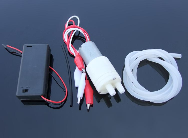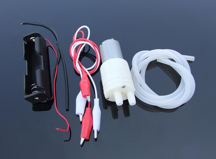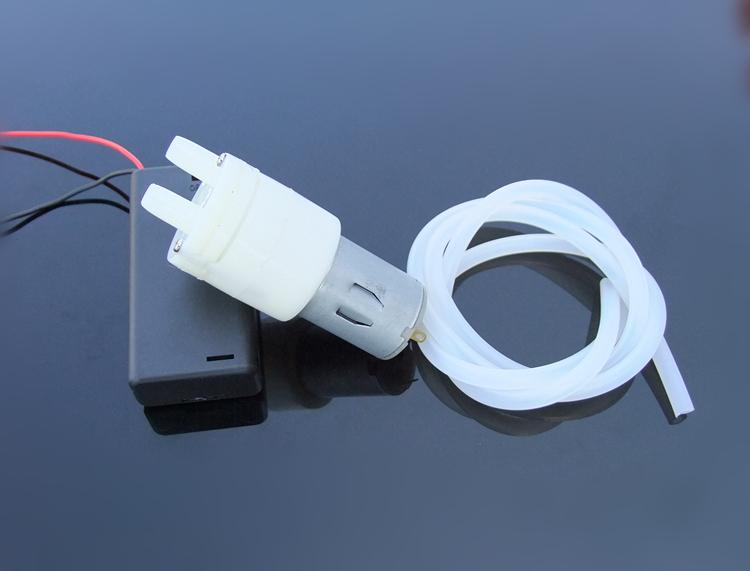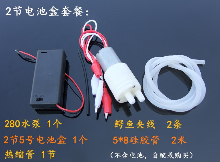 1. Paquete de caja de batería de 2 celdas:Bomba de agua 280 + 2 cajas de pilas AA + 2 cables con pinza de cocodrilo + tubo de silicona 5*8 de 2 metros + 1 tubo termorretráctil
