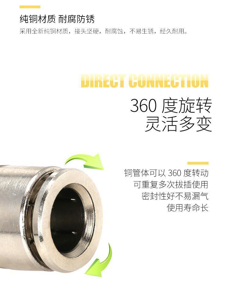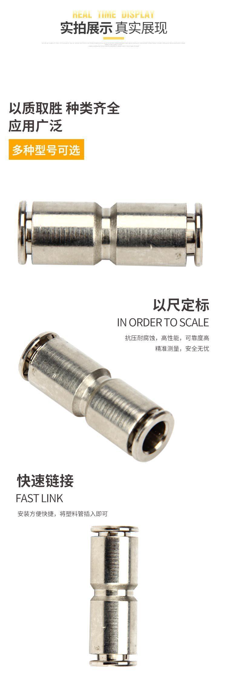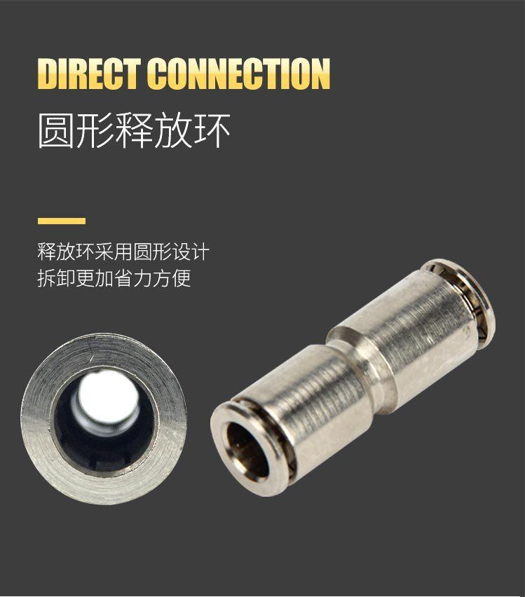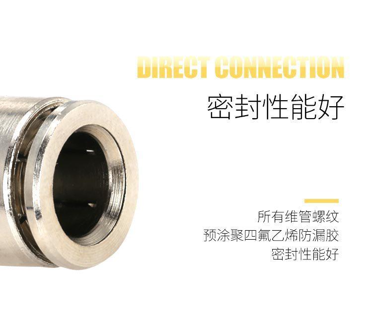Conector de acero inoxidable chapado en cobre y níquel Conector recto pasante de PU todo metal Conector rápido enchufable PG 304