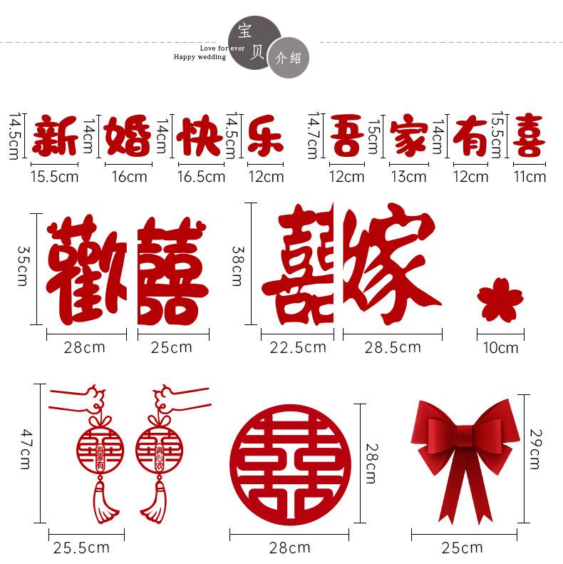 Traje de decoración para habitación de bodas, casa nueva para hombre, sala de estar, dormitorio, armario, decoración, pegatinas con la palabra Xi para boda, suministros para boda