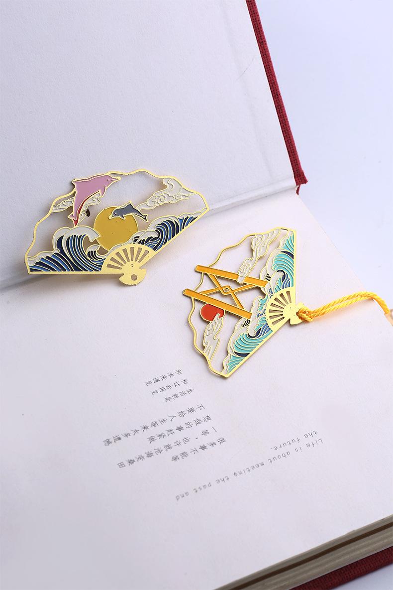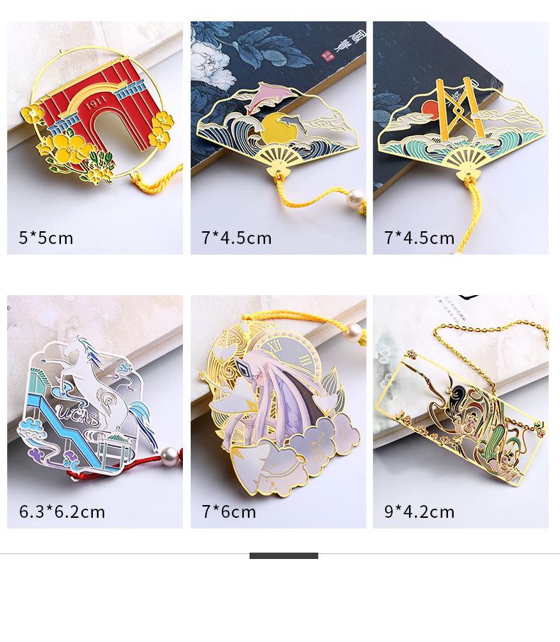 Este marcapáginas metálico en forma de abanico está hecho de latón de 0.4 mm y se fabrica mediante un proceso de corrosión y ahuecado. Se pueden personalizar varios patrones, adecuado para regalos de graduación y regalos de empresa.