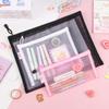 Bolsa de archivo transparente de malla de nailon para oficina, bolsa de información duradera de gran capacidad, bolsa de almacenamiento portátil con cremallera para estudiantes A4