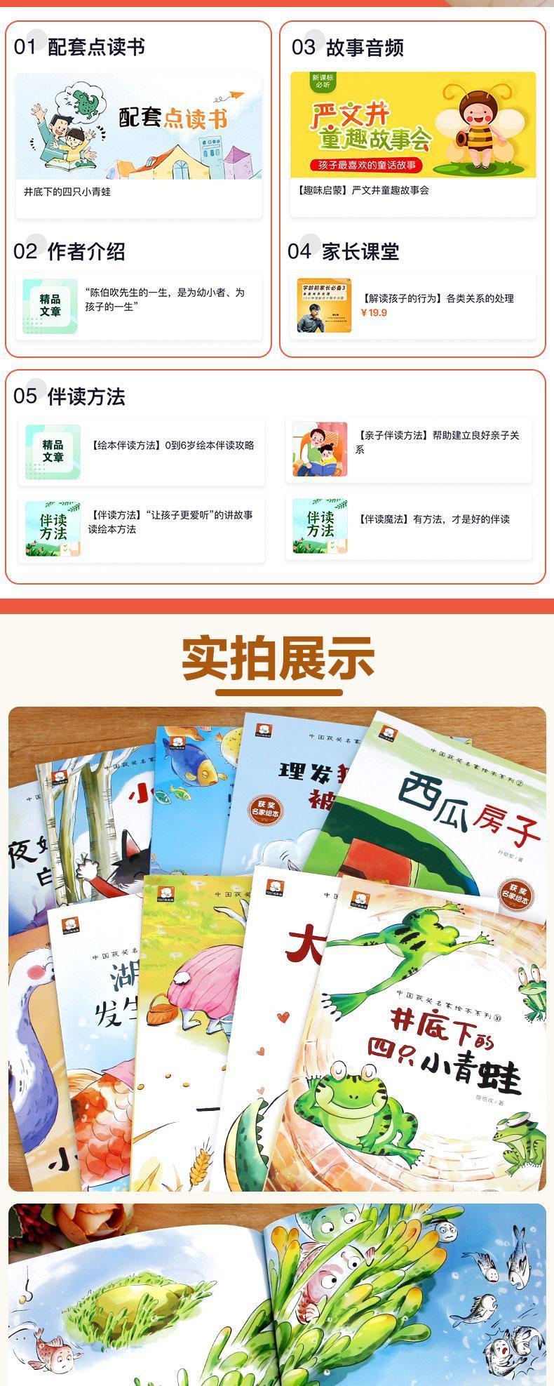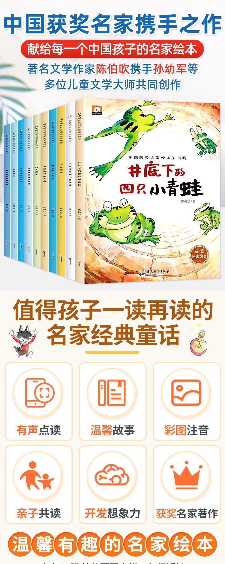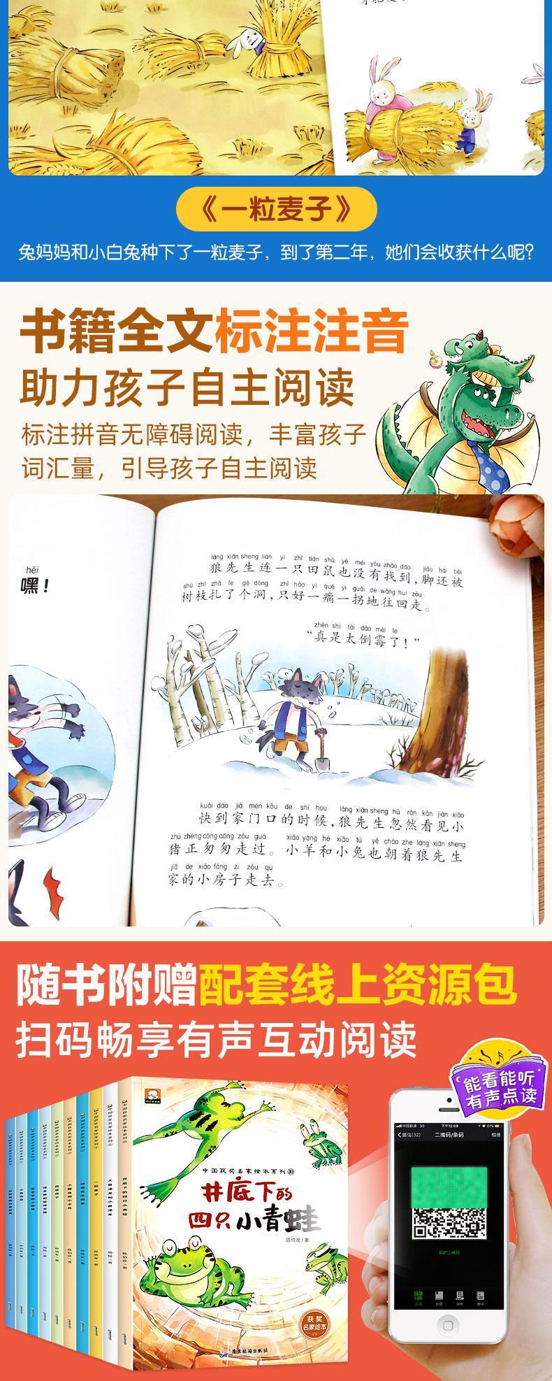 Un conjunto completo de 10 piezas de cuatro pequeñas ranitas debajo del pozo, libro ilustrado para jardín de infantes, libro de cuentos galardonado, famoso libro de audio para el hogar