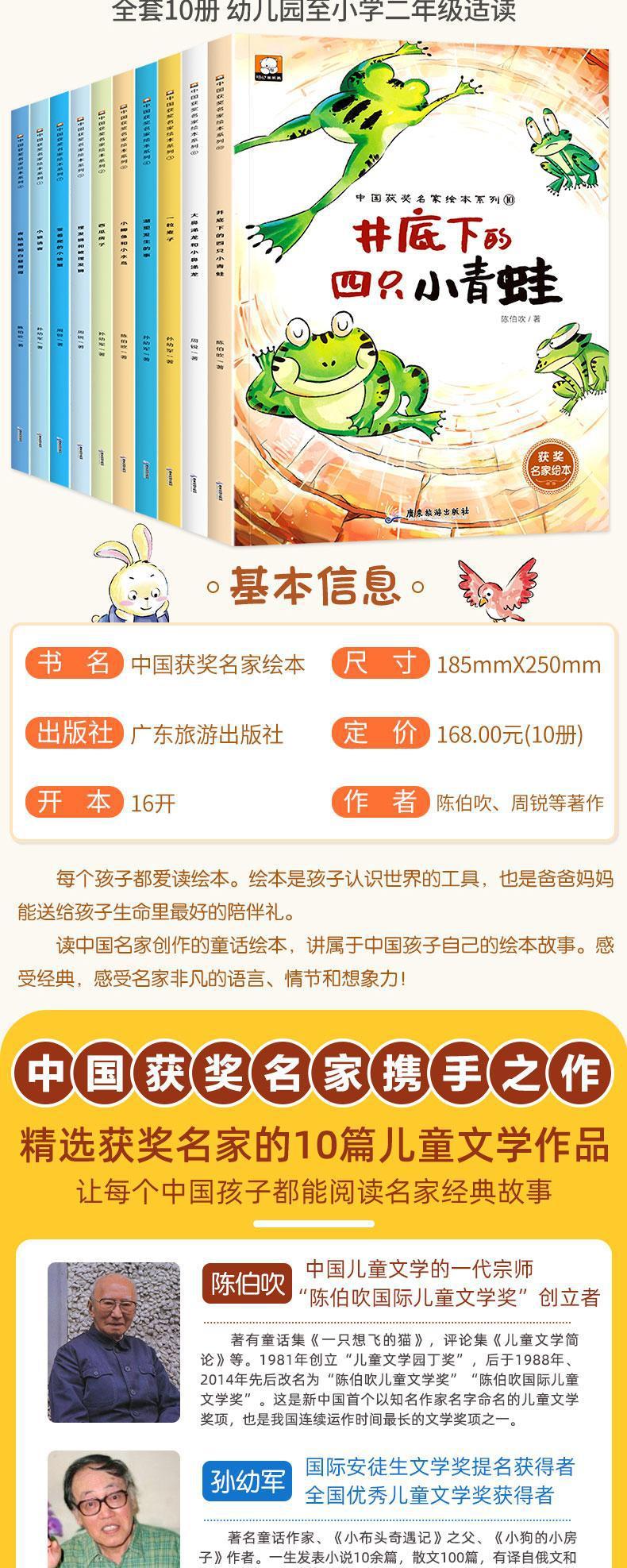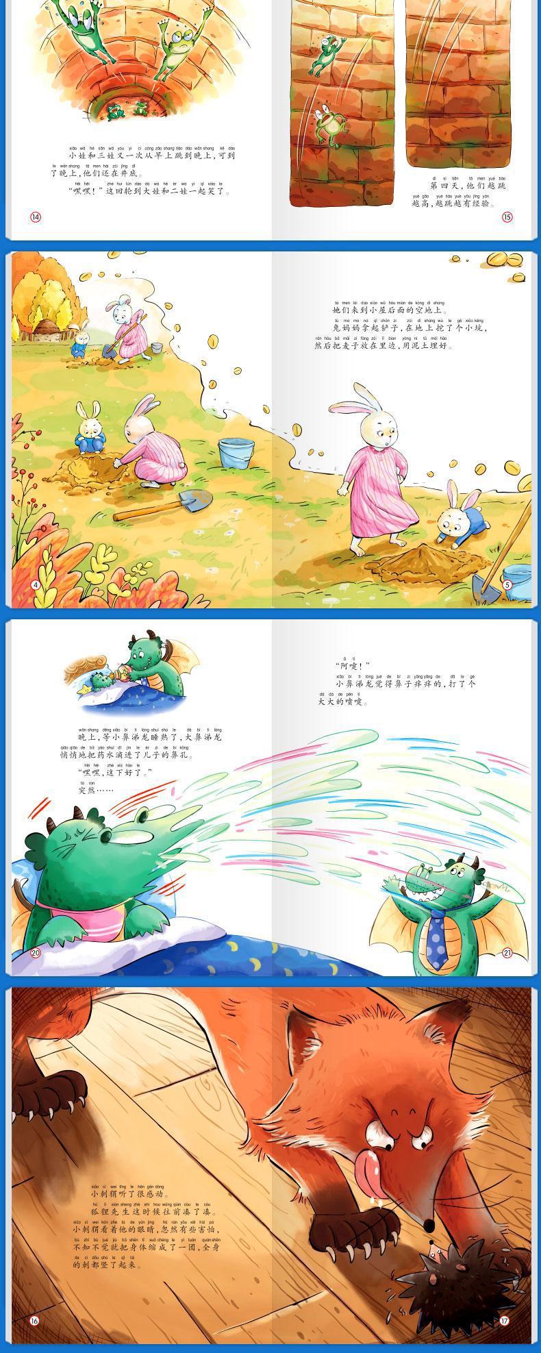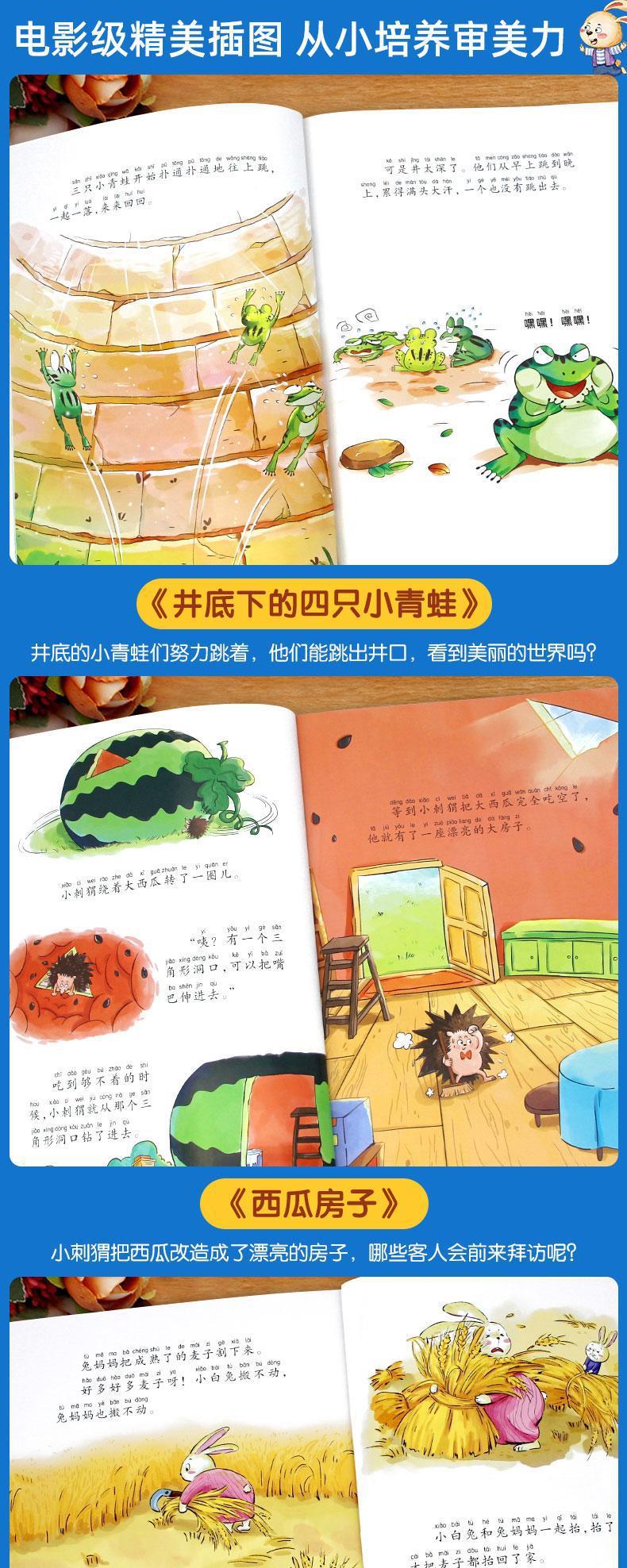 Un conjunto completo de 10 piezas de cuatro pequeñas ranitas debajo del pozo, libro ilustrado para jardín de infantes, libro de cuentos galardonado, famoso libro de audio para el hogar