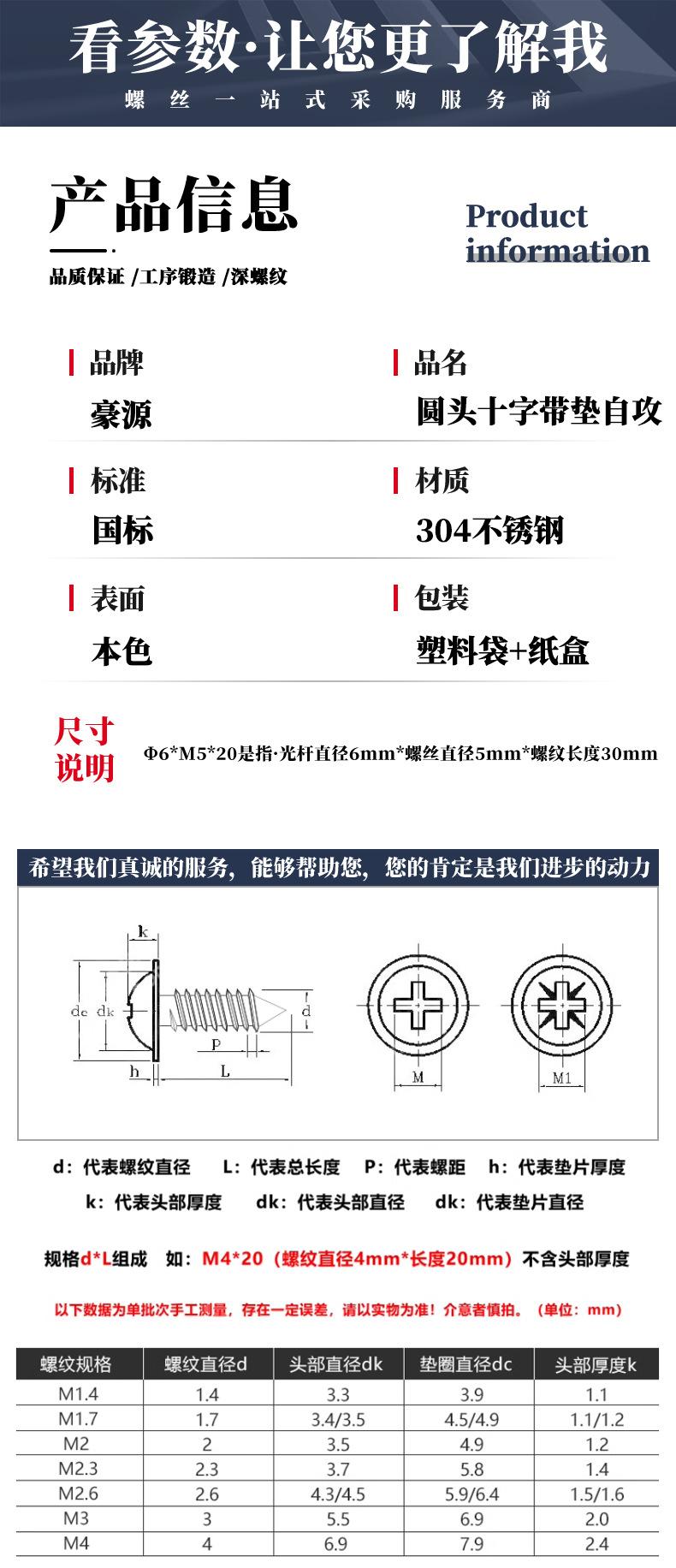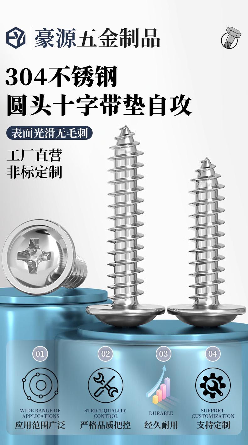 Compra Acero Inoxidable 304 Cabeza Redonda Cruz con Arandela Tornillos Autoperforantes Cabeza Pan con Mesón Pwa Tornillos Autoperforantes M2/M3/M4 al por mayor en Joom.pro