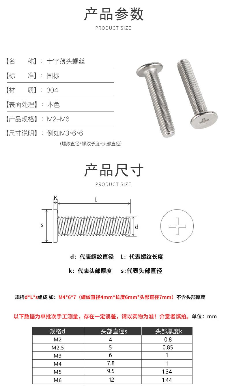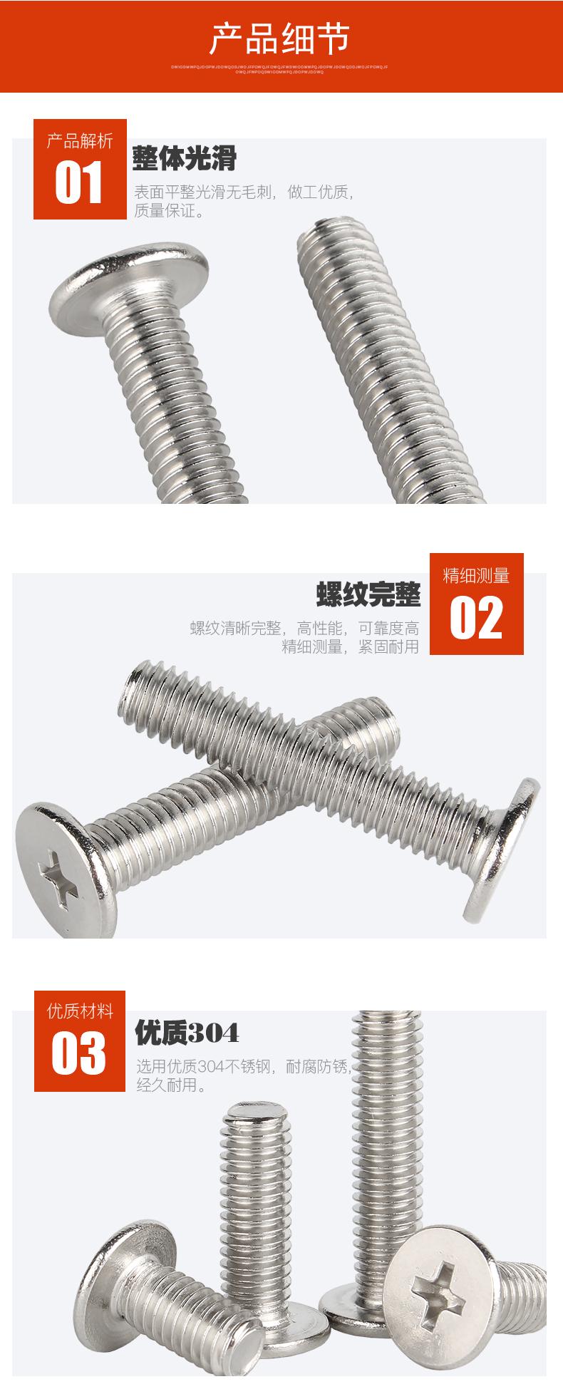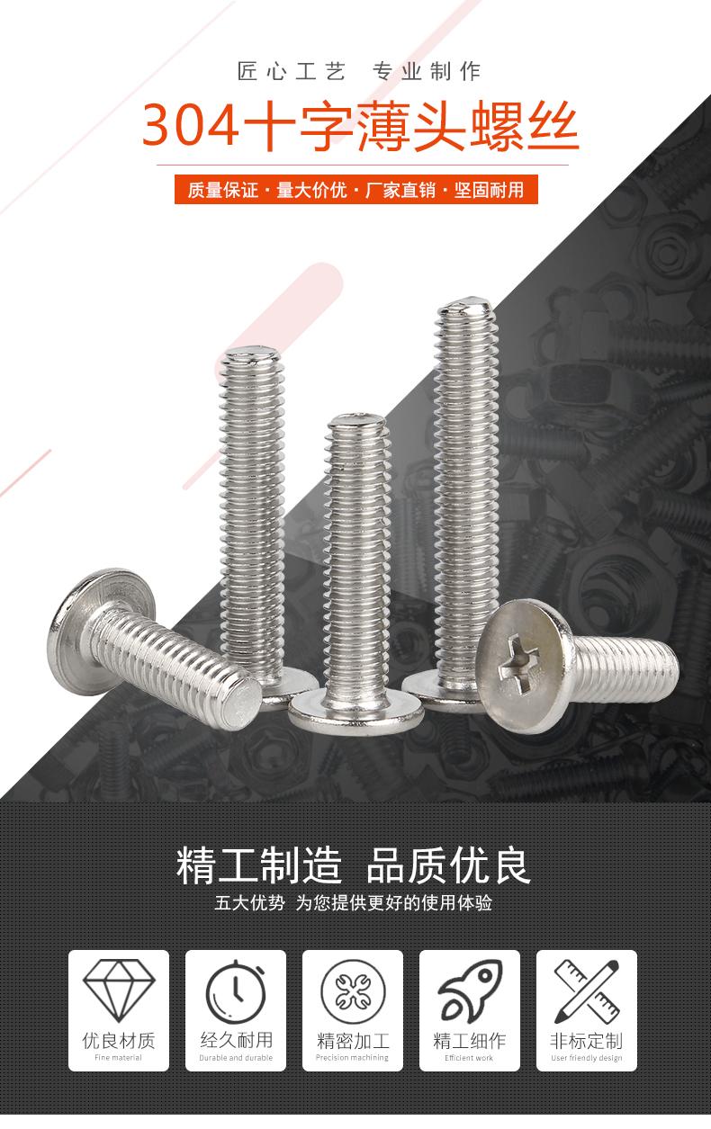 Tornillo de cabeza plana grande en cruz de acero inoxidable 304, tornillo de cabeza plana CM, tornillo de cabeza ultrafina M2M3M4M5M6M8