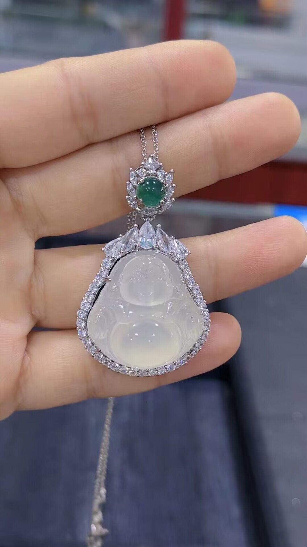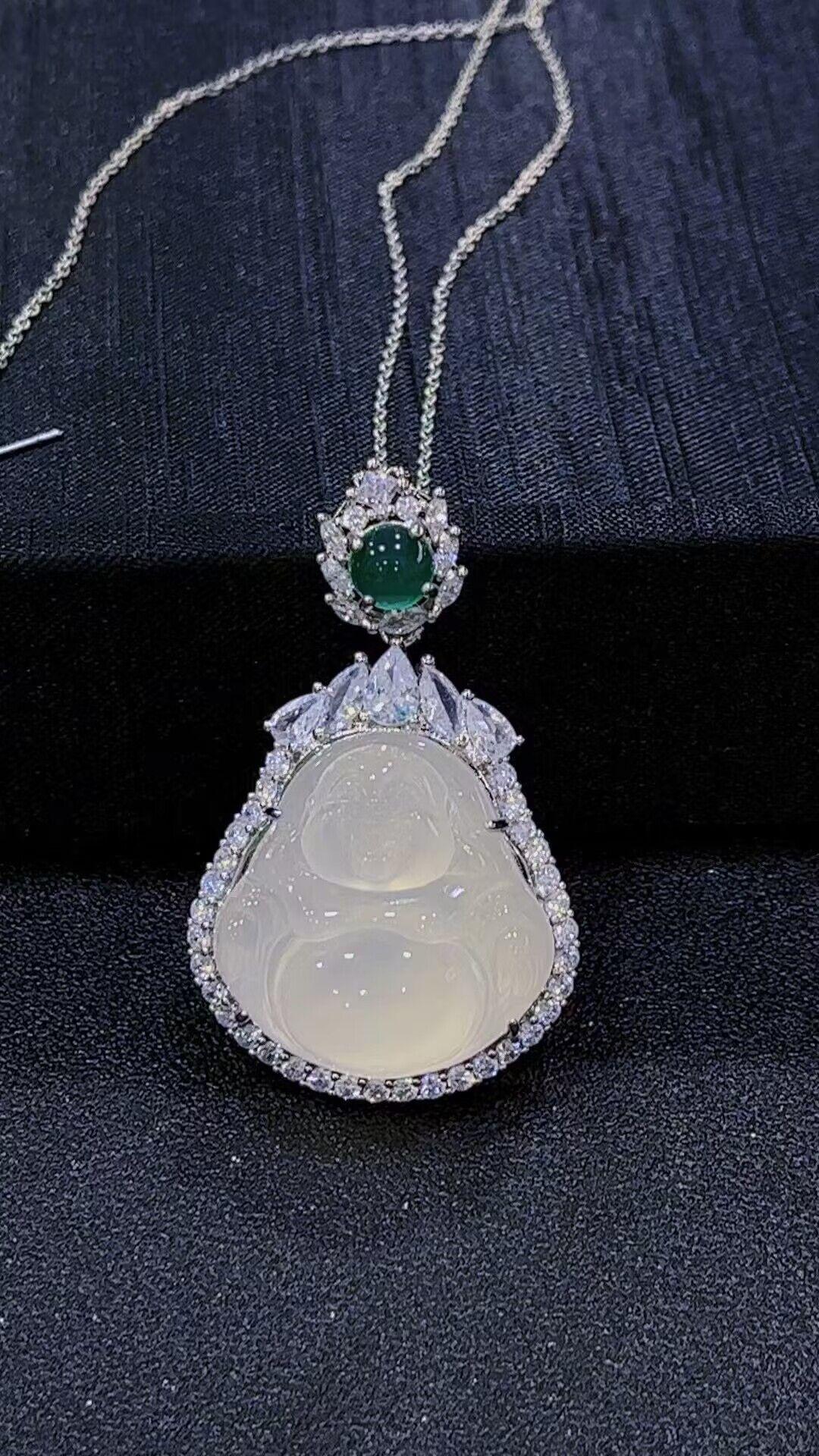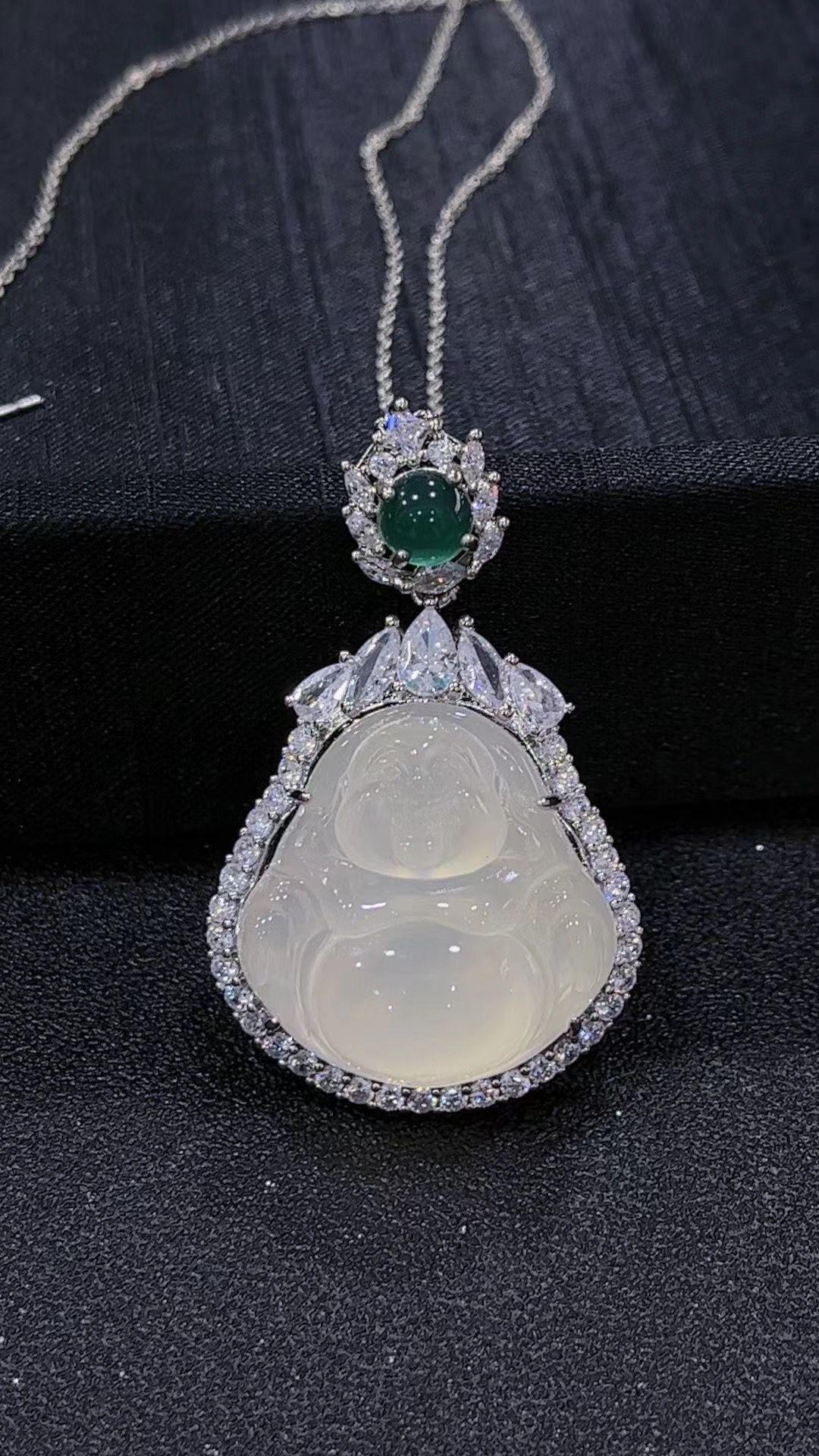[Nombre del bebé] Exquisito colgante de Buda de calcedonia