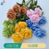 Rosa de 4 cabezas, rama única, rosa redonda, nueva decoración floral para bodas, escenario, paisajismo, flor falsa, auditorio, hermosa decoración Chen, flor de seda