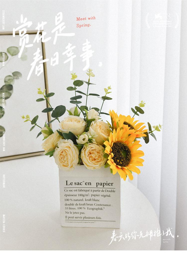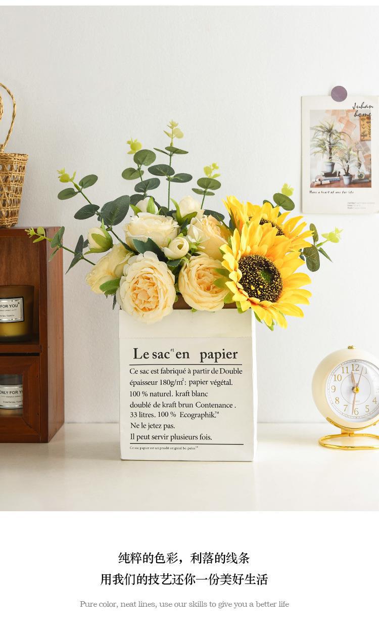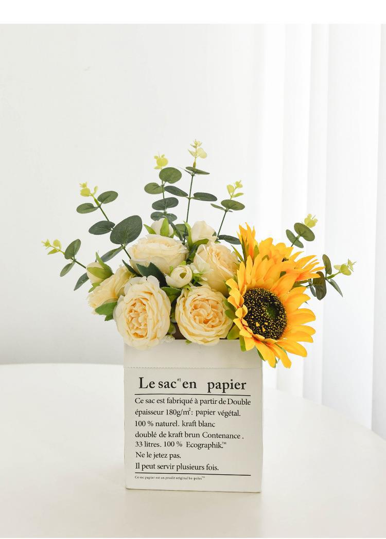 Nuevo girasol artificial creativo, flor real, bolsa de papel, conjunto floral, muebles para sala de estar, entrada, mesa de comedor, adornos decorativos.