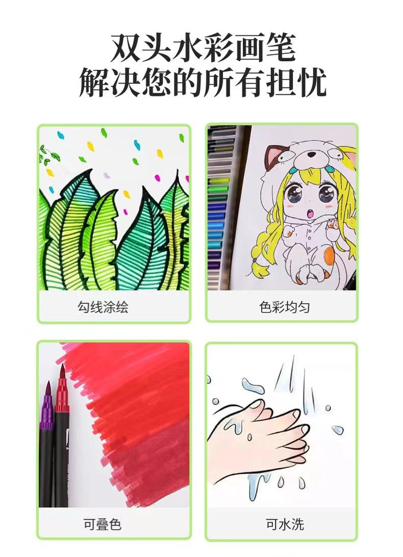 Compra Bolígrafo de acuarela de doble punta, 168 colores, para pintura artística, bolígrafo Gouline, para traje de pintura infantil, bolígrafo de color lavable al por mayor en Joom.pro