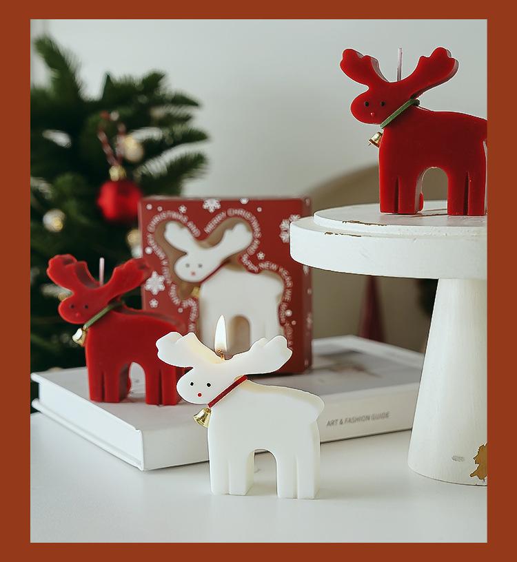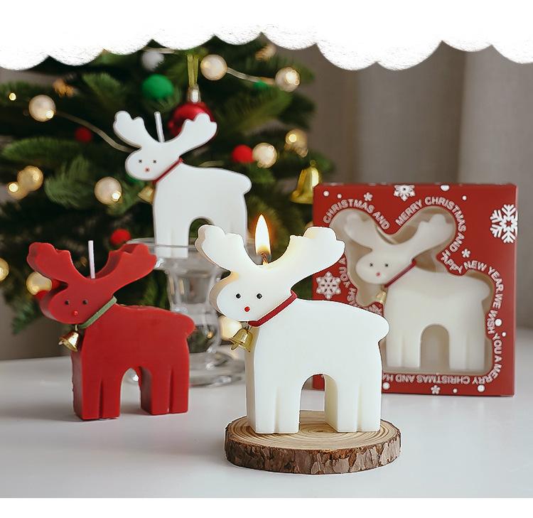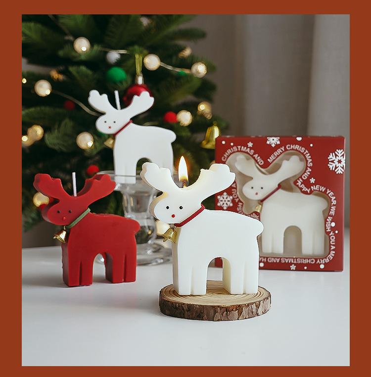 Christmas elk scented candle White (Fragrance: British pear freesia), Christmas elk scented candle red (Fragrance: Velvet Rose)