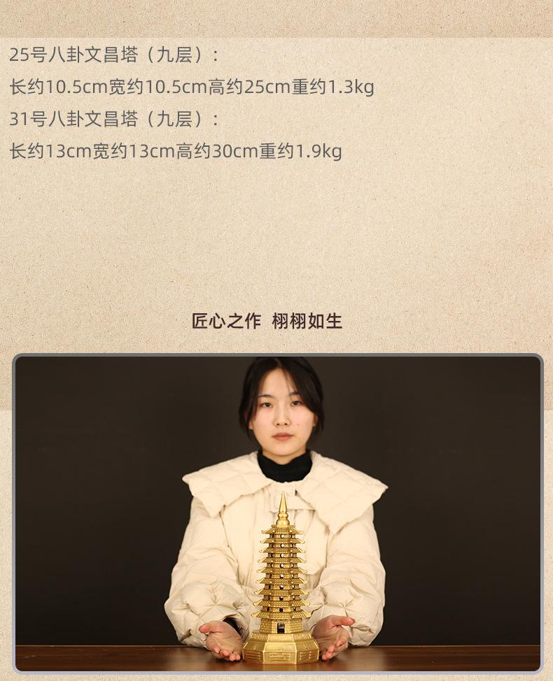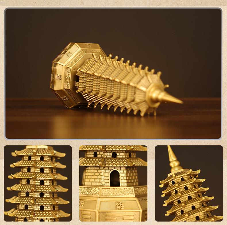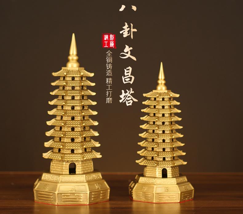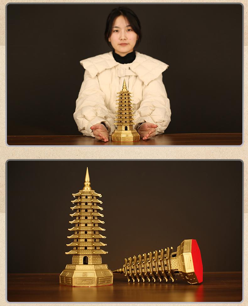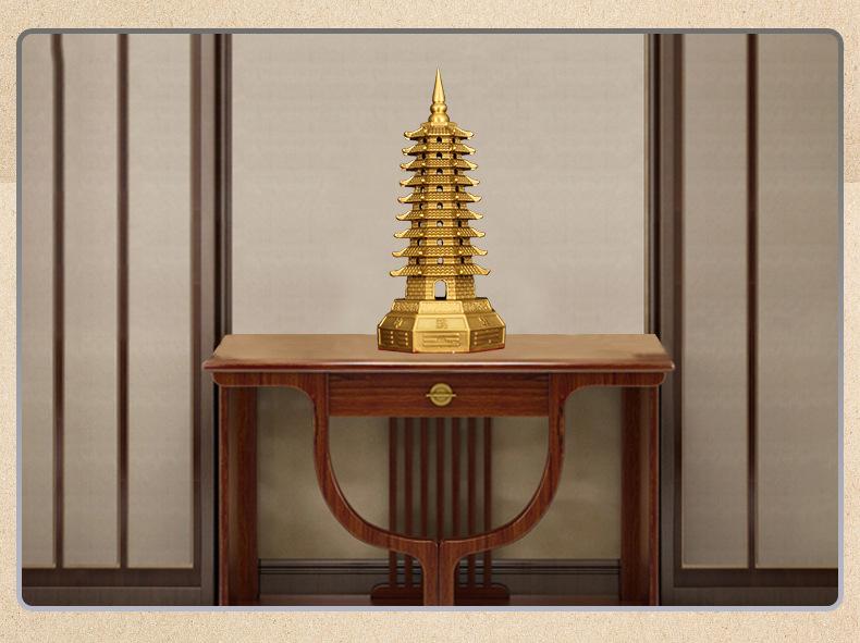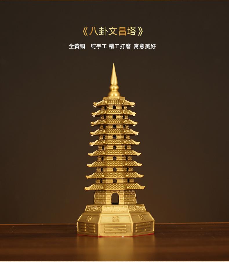 Decoración de la Torre Wenchang de latón de siete capas Torre Wenchang de cobre de siete capas Bagua Decoración de la entrada de la sala de estar Estudio Artesanía de escritorio