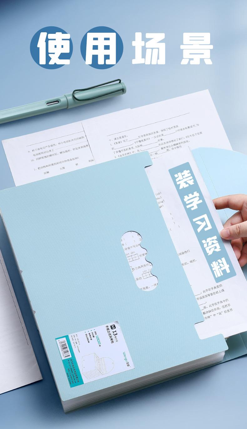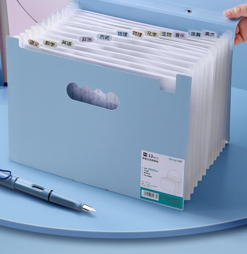 Bolsa de papel portátil Wen Gu 13 A4, carpeta multicapa de gran capacidad, bolsa de almacenamiento vertical para papel de prueba, soporte para papel, venta al por mayor
