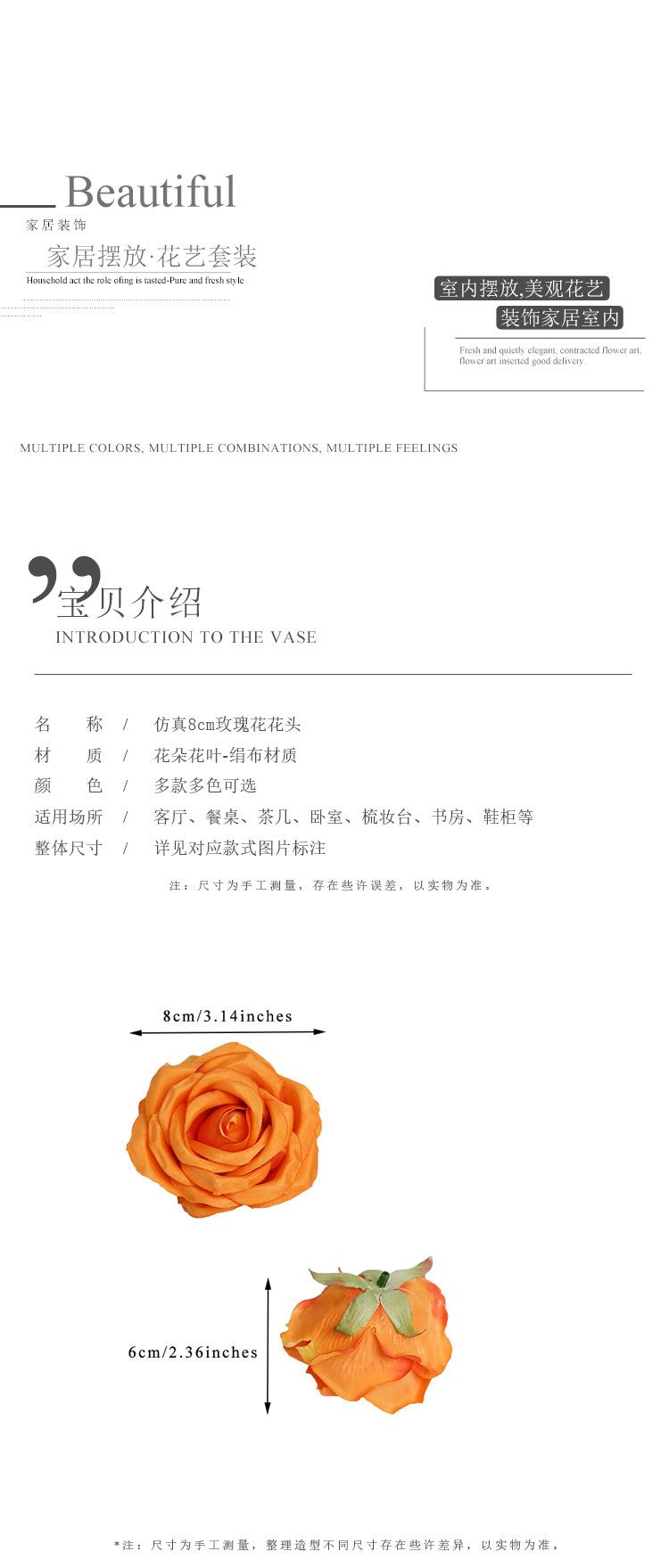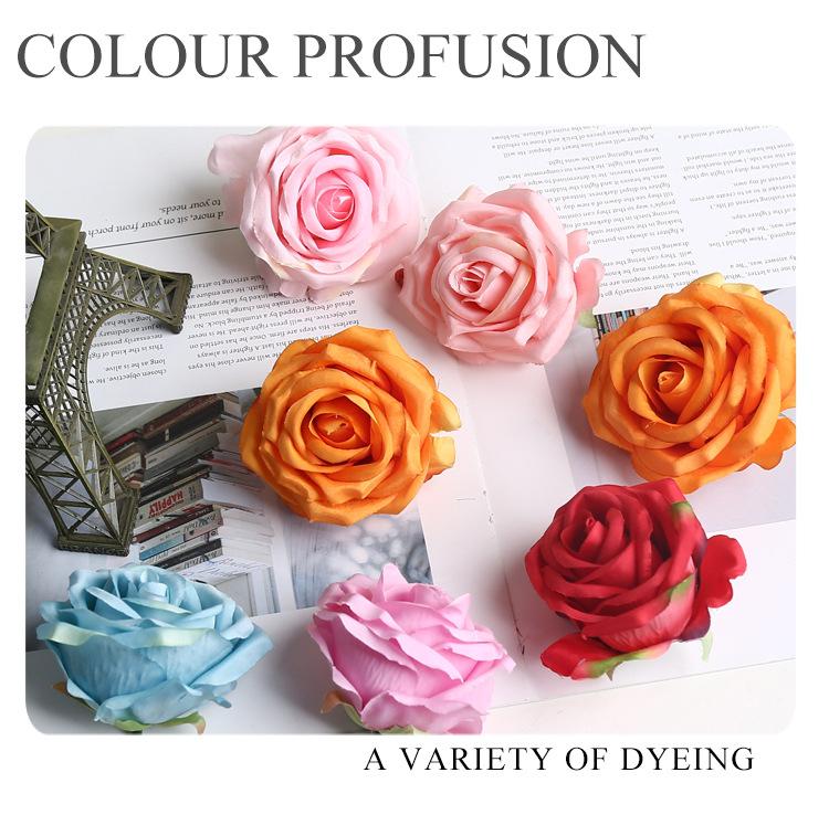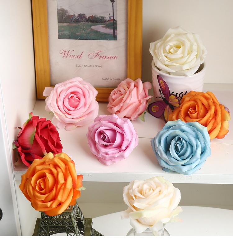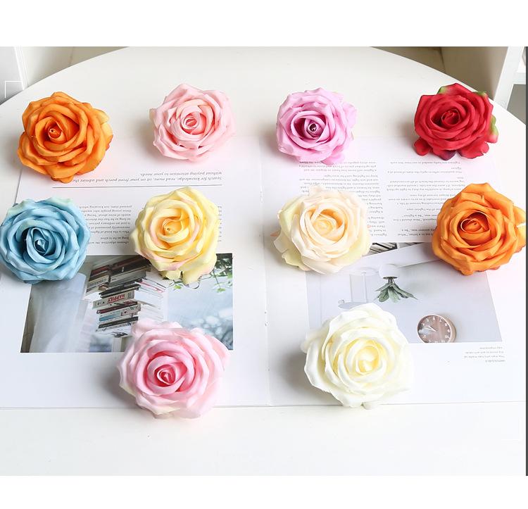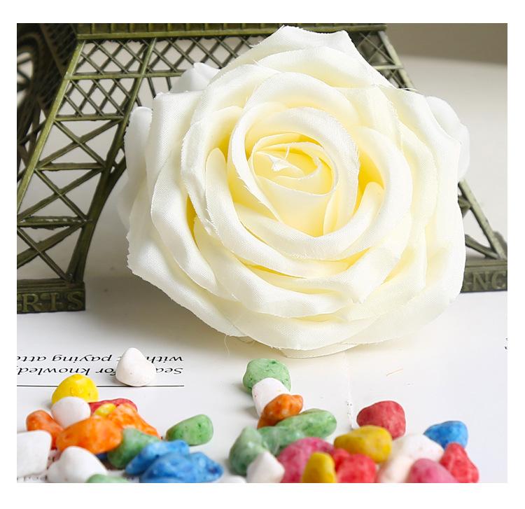 Flor artificial DIY hecha a mano horquilla flor tela de seda flor rosa flor 8CM cabeza de flor ropa accesorios de fotografía flor floral falsa