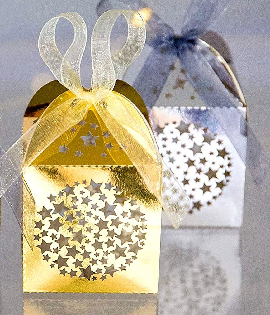 Caja de dulces de boda con cinta hueca