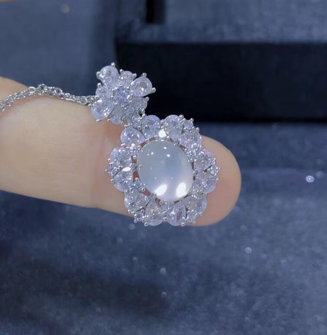 【Nombre del bebé】Exquisito colgante de calcedonia blanca