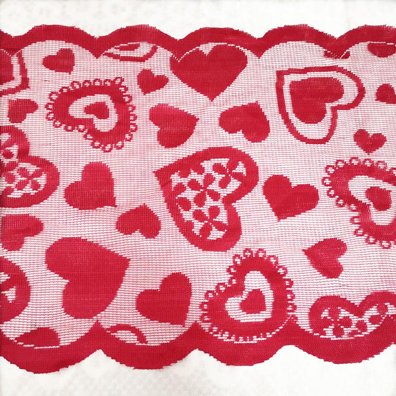 Nombre del producto: Camino de mesa de encaje rojo con flor de amor para el Día de San Valentín